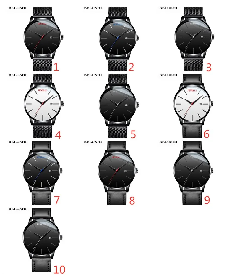 Бренд: JENISES Модель: 8003 Специальная функция: календарь Тип дисплея: указатель Применимые люди: мужчины Стиль: Повседневный Водонепроницаемость: Да Водонепроницаемость: 30 м Тип механизма: кварцевый Толщина: 10 мм Диаметр циферблата: 43 мм Тип короны: спиральная Корона Материал зеркала: минеральное укрепленное стеклянное зеркало Стиль пряжки: подвесная пряжка Материал пряжки: сплав Материал ремешка: нержавеющая сталь Форма циферблата: круглая Материал корпуса: сплав Цвет: номер 1, номер 2, номер 3, номер 4, номер 5, номер 6, номер 7, номер 8, номер 9, номер 10
