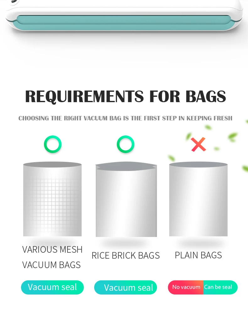 Вакуумная упаковочная машина для пищевых продуктов с 15 пакетами, вакуумная упаковочная машина для пищевых продуктов Функция: 1. Полупустая упаковка 2. Вакуум + функция запечатывания 3. Он может быть остановлен во время работы 4. Функция перегрузки 5. Легко разделить, легко чистить. Внимание: 1. Машина не может вакуумно упаковывать жидкость в мешки. 2. Машина должна использоваться со специальными мешками с линиями при вакуумной герметизации, для обычных мешков просто может быть запечатана.