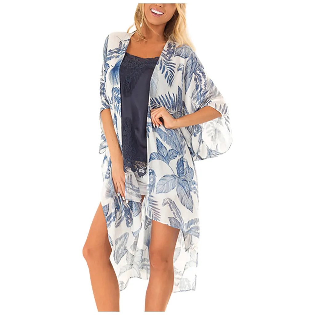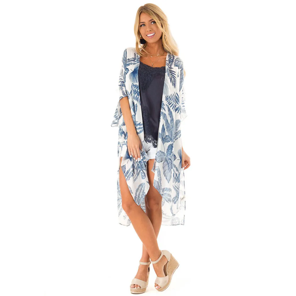 Стиль: идеально подходит для улицы, пляжа, курорта, повседневного кимоно, Накидка для пляжного костюма, модная шифоновая блузка, Сексуальная Пляжная накидка Верх, тонкое пальто для весны, лета, осени и т. д. Универсальный гардероб Степлер как для жарких дней, так и для холодного кондиционирования воздуха в помещениях