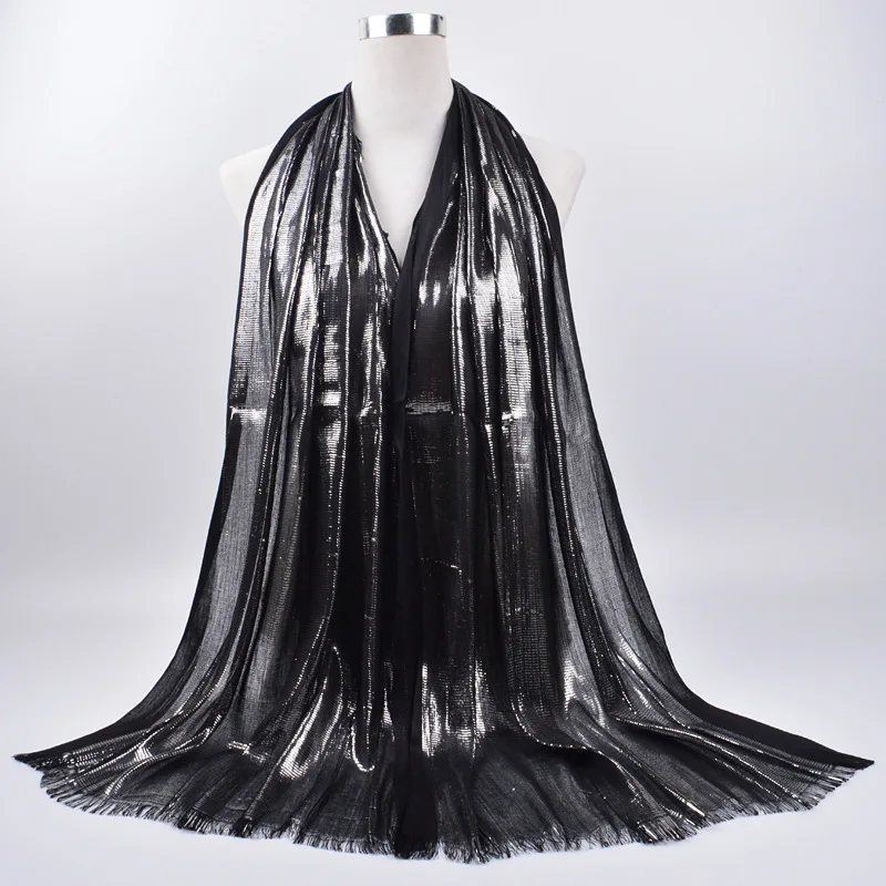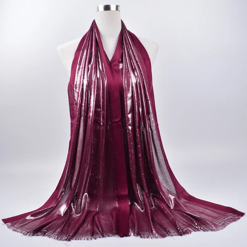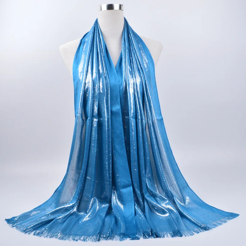 2020 женские мусульманские, однотонные хиджаб шарф с блестками женская кисточка Мерцающая Серебряная шаль головной платок мусулман хлопковая повязка для головы хиджаб обертывания