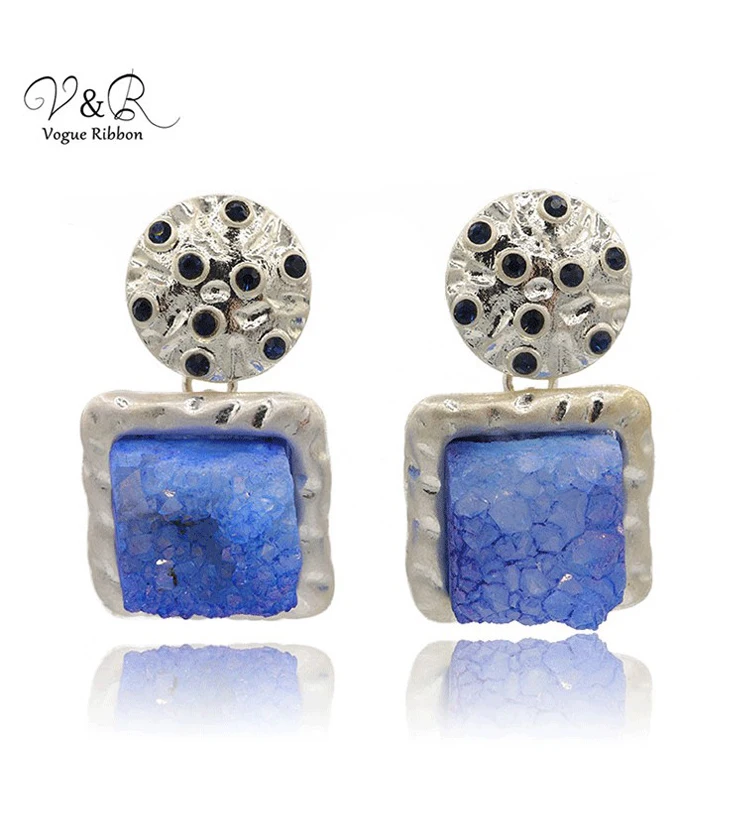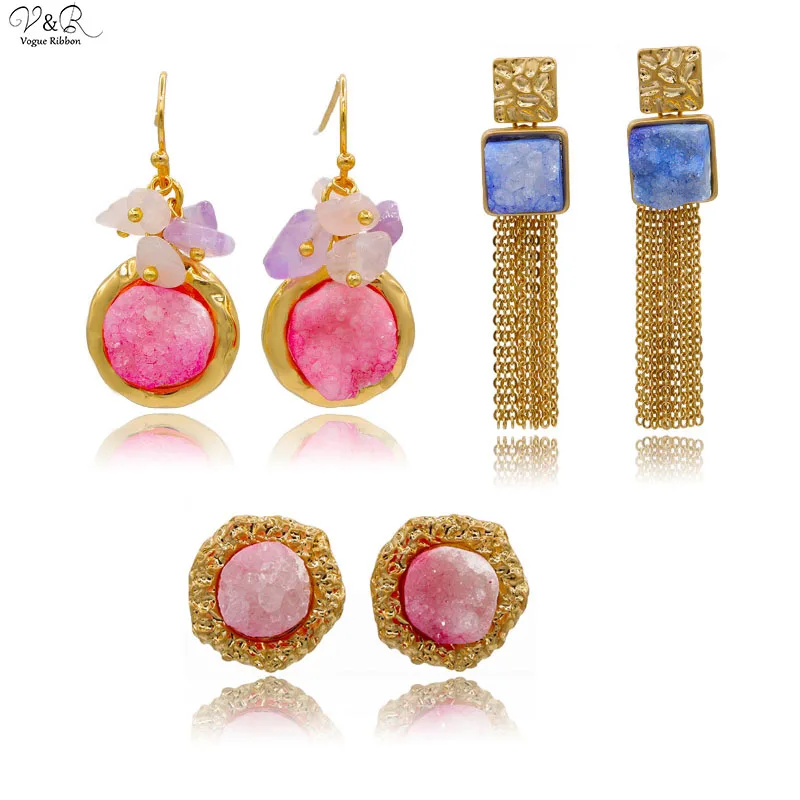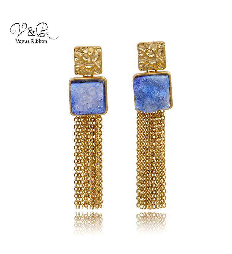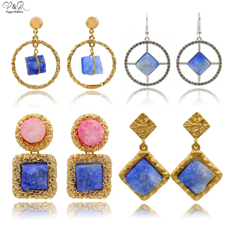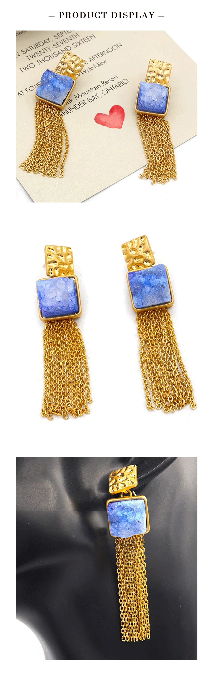 Новые трендовые серьги 2020 синие розовые натуральные подвески, кварцевые поношенные Серебряные Позолоченные висячие серьги, серьги с кисточками, подарок
