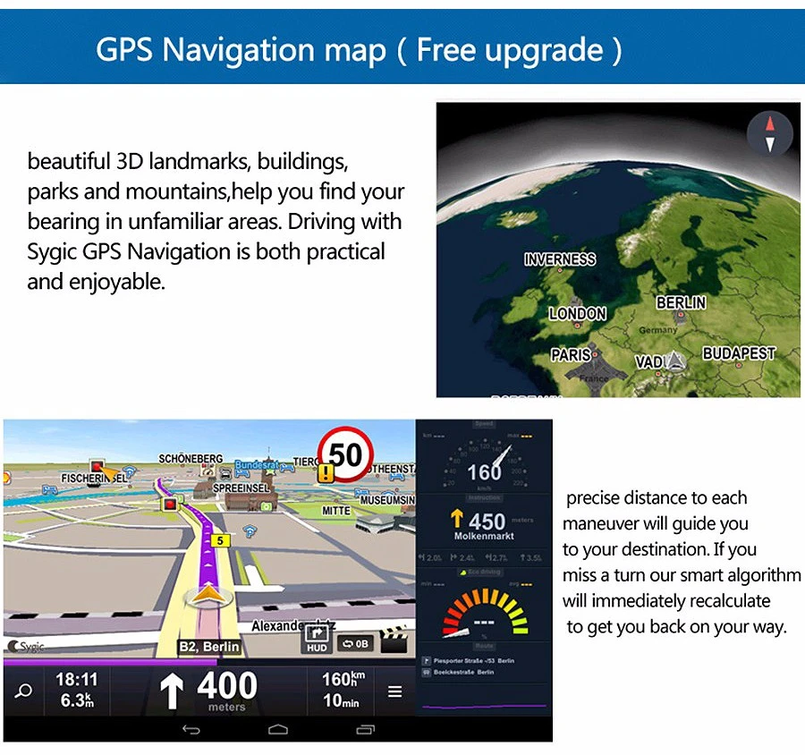 Когда вы заказываете, мы устанавливаем соответствующую карту для вас в стране в соответствии с вами (мы поможем вам установить gps-карты, использовать только gps офлайн-карты, а не онлайн-карты). Вы можете использовать карту, которую мы установили для вас, чтобы безопасно доставить вас в место назначения, независимо от места назначения. Кроме того, он также поддерживает сетевые функции 3g/4G и обеспечивает более плавный доступ к онлайн gps-навигации.