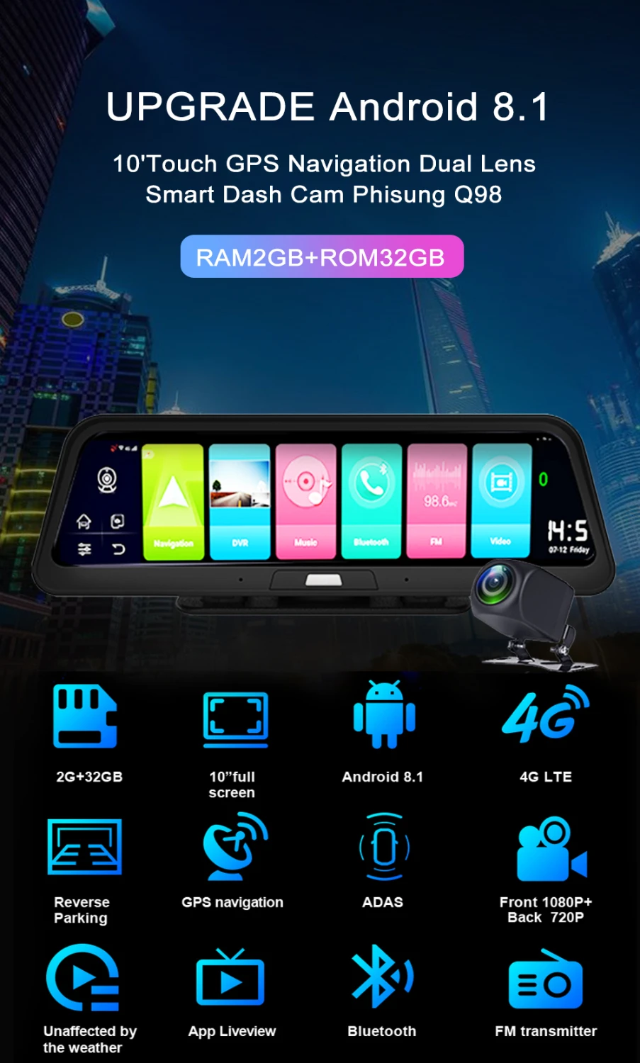 Встроенный Wi-Fi позволяет вам оставаться на связи в пути и быстро просматривать веб-страницы. Gps карта, кино, музыка и приложения могут быть предварительно загружены, когда доступен бесплатный WiFi. Кроме автомобильного видеорегистратора подключение к wifi, и это также может быть Wi-Fi горячие точки для вашего другого устройства, когда Автомобильный видеорегистратор поставляется с Интернет 2G/3g/4G sim-карты.
