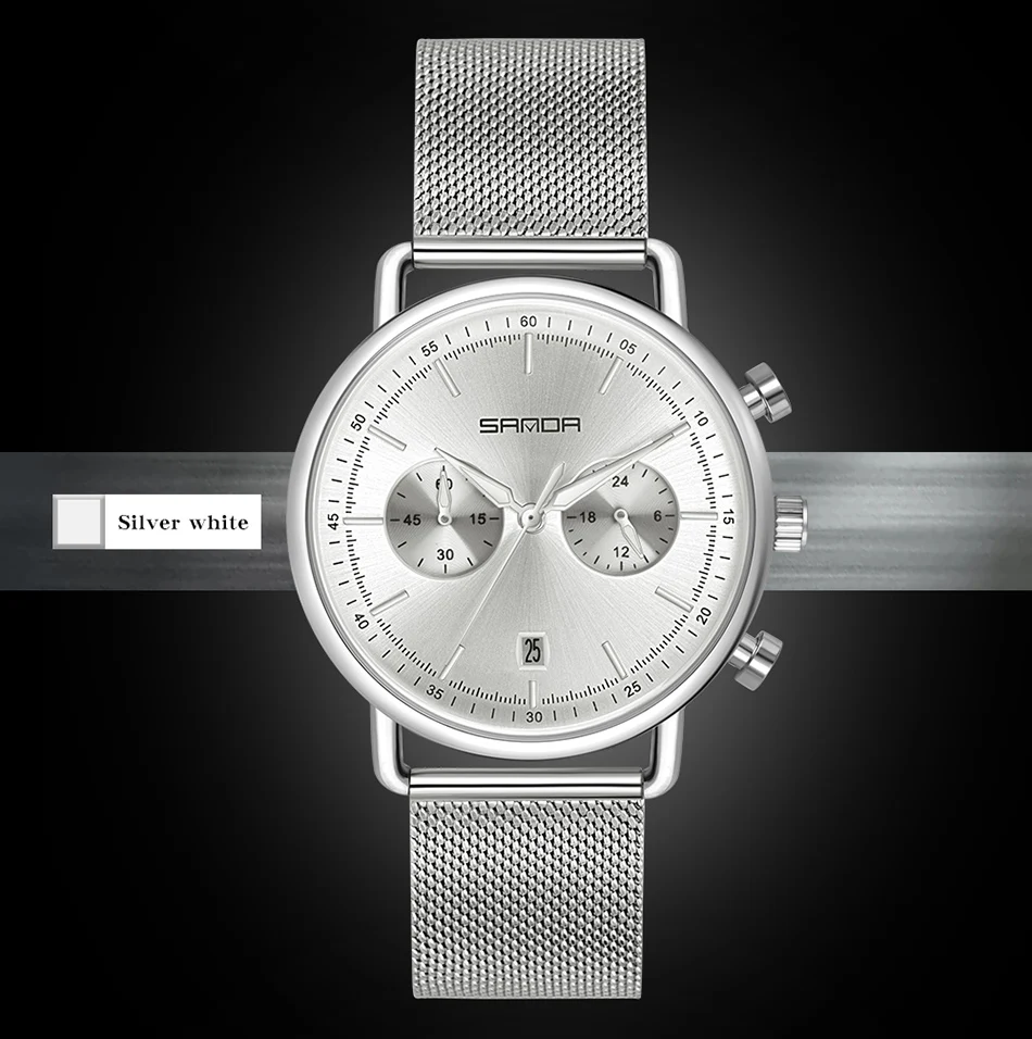 Бренд: SANDA Категории часов: мужские часы Стиль часов: Модный повседневный Особенности: Водонепроницаемость, ударопрочность Размер Длина Часов: около 25 см Диаметр циферблата: около 41,5 мм Ширина ремешка: около 20 мм Толщина циферблата: около 12 мм Упаковка 1 часы (в комплект не входят браслеты, но если вам это нравится, вы можете связаться с нами, чтобы купить их отдельно) (Размер измеряется вручную, возможна погрешность в 1-3 см, только для справки. Пожалуйста, поймите) Купите более 5 штук, мы предоставим вам скидку 5%!