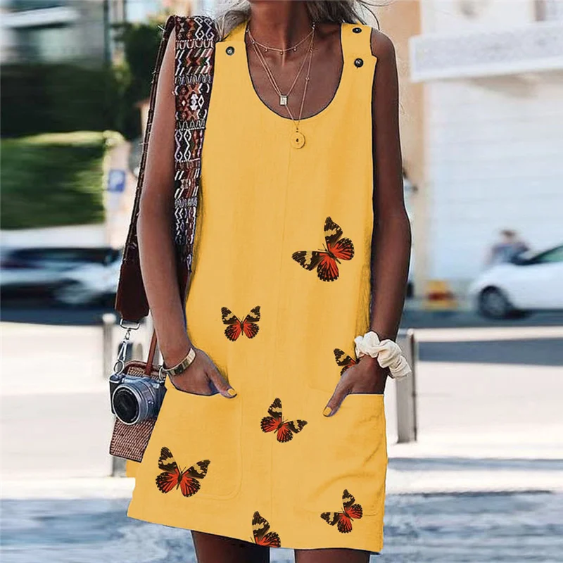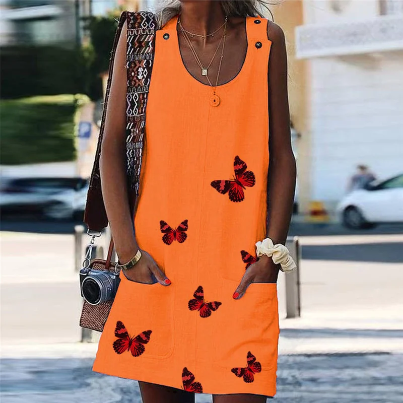 Женское пляжное платье без рукавов Boho, летнее макси-платье на пуговицах с принтом и карманами