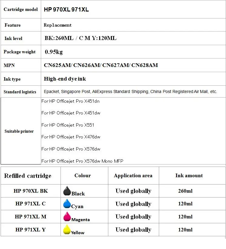 Сменный чернильный картридж HP970 HP970XL HP971 HP971XL для hp Officejet Pro X451dn X451dw X476dn X476dw