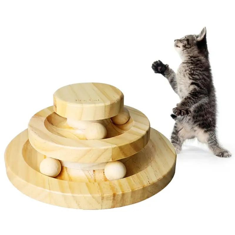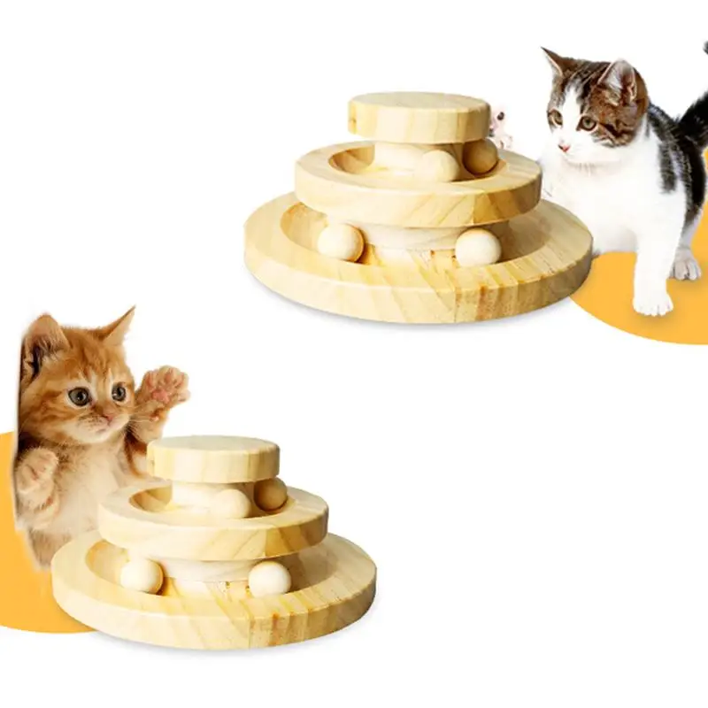 Деревянные игрушки для кошек, интерактивные игрушки, трехслойная кошка, поворотный стол, головоломка для животных, забавная орбита, башня, забавная тарелка, кошачья интерактивная игрушка