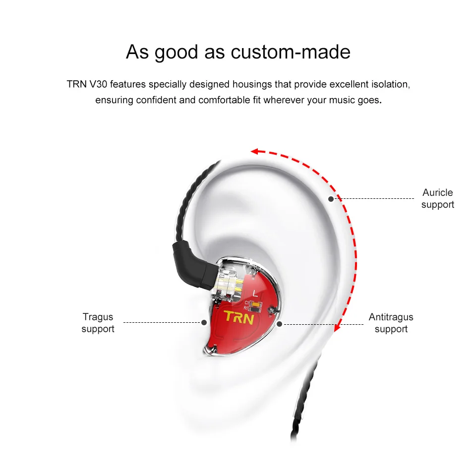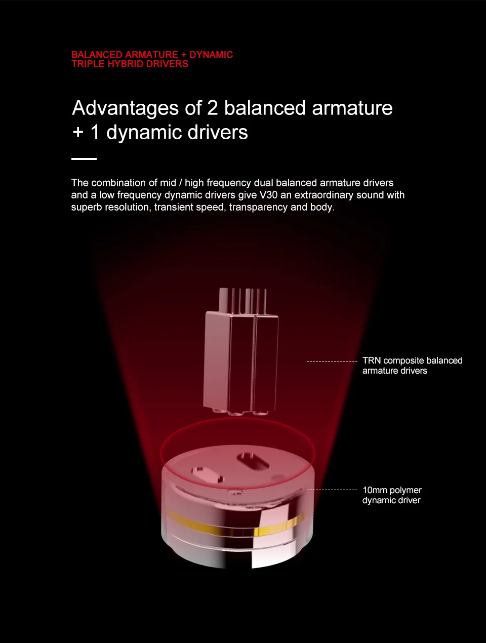 Параметры: Название продукта: TRN V30 Гибридный Металлический наушник Сопротивление: 20 Омега Чувствительность наушников: 99 дБ/мВт Частотный диапазон: 20-20000 Гц Тип штекера: 3,5 мм прямой штекер BNC Кабель Длина: 1,25 м Цвет: черный, белый Есть ли кабель: Да Интерфейс наушников: 2-контактный интерфейс С микрофоном: опционально Можно ли заменить кабель: Да Блок драйвера: 2BA + 1DD Гибридный блок драйвера (композитный динамический + композитный BA)