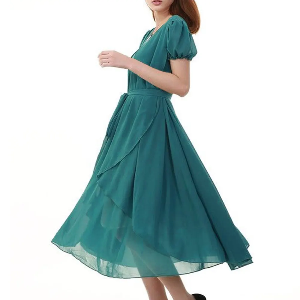 2020 женское летнее длинное платье с поясом однотонное элегантное вечернее платье женская одежда платья Бохо с круглым вырезом Шифоновый Сарафан