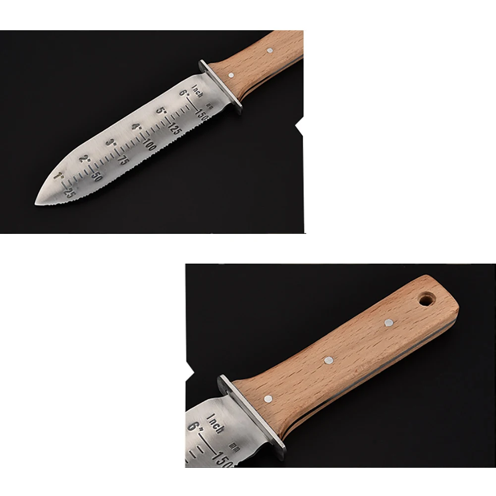 Также имеется линейка с миллиметровым и дюймовым лезвием для легкого измерения глубины почвы.