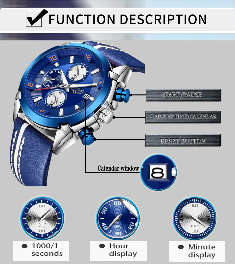 Здравствуйте! Добро пожаловать в наш магазин! Качество во-первых, обеспечивая лучший сервис. Все клиенты-наши друзья. Стильный дизайн, 100% новый бренд, высокое качество! Главные особенности: -100% новый электронный ярлык высокого качества; Топ бренд класса люкс Высокое качество дизайн циферблата, функция отображения даты; -3 АТМ/30 м водонепроницаемый (холодный душ и стойка для плавания, не работает под водой, не поддерживает горячую воду); Технические характеристики: ? Диаметр циферблата: 47 мм ? Толщина циферблата: 14 мм ? Ширина ремешка: 24 мм ? Длина ремешка: 25 см Посылка включает в себя: -100% новый бренд -1 x часы -1 оригинальная подарочная коробка -1 x чистая ткань -1 гарантийный талон