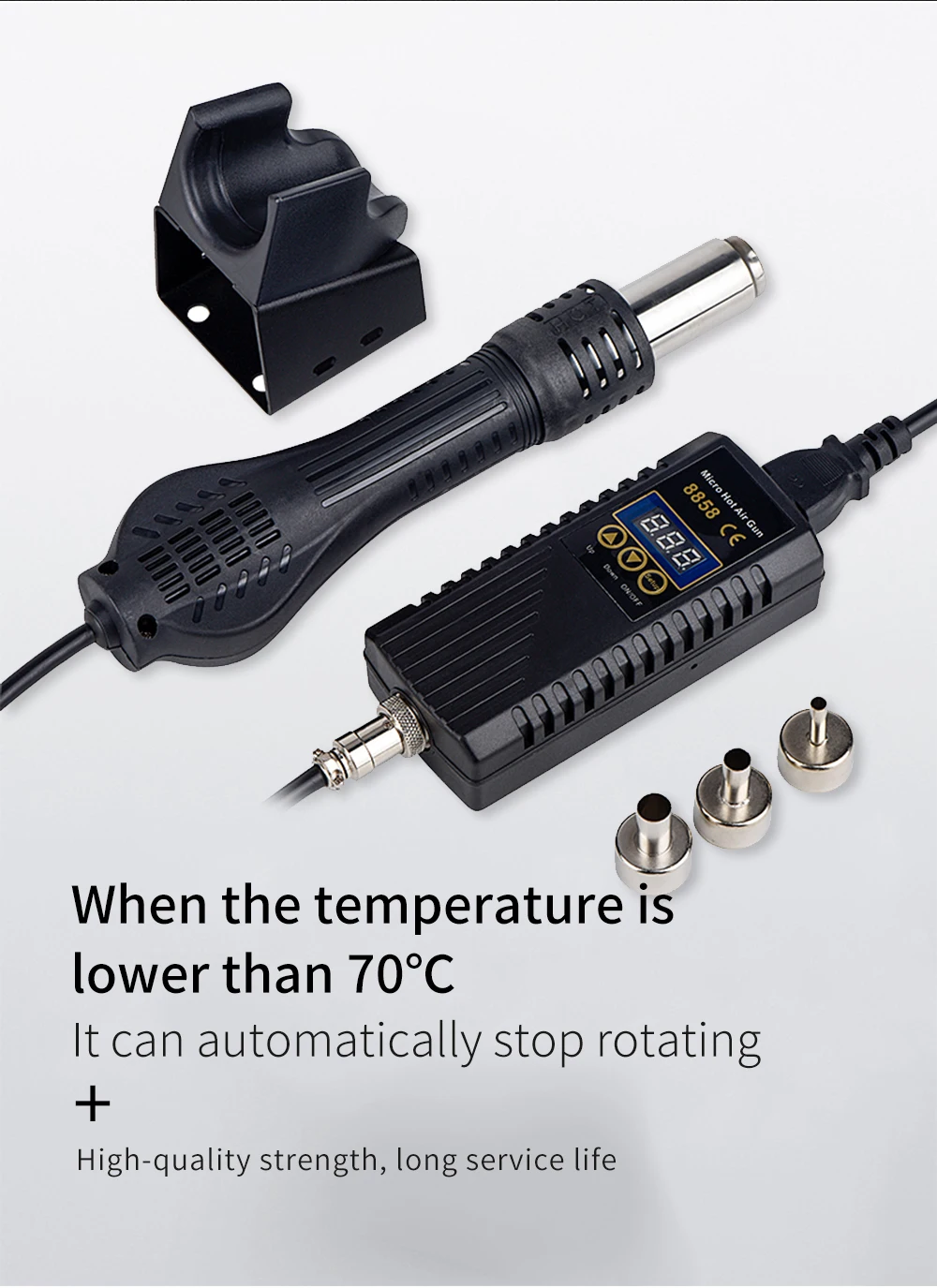 Модель: 8858 Напряжение: только 220 В/110 В Описание: 1. Удобный портативный и цифровой светодиодный дисплей. 2. Микрокомпьютерное управление, быстро разогревается. 3. Регулировка потока воздуха и контроля температуры клавиатуры. 4. Ознакомьтесь с инструкциями, включенными в три вида насадок (большой, средний и маленький) Запасные части. 5. Заменит деталь, если значение сопротивления неправильное. 6. Когда температура меньше 70 ° c, можно остановить вращение автоматически. 7. Высокое качество сопротивление хорошее для длительного срока службы 8. Безопасный припой QFP , PLCC , BGA и другие чувствительные к температуре компоненты. 9. Интеллектуальное обнаружение и крутые характеристики воздушного потока. 10. Зеленые линии и высококачественный силиконовый корпус хорошо нагреваются для продления срока службы и экономии энергии. Портативный цифровой светодиодный паяльная станция Bga с бесщеточным вентилятором, технические данные 100 Вт-650 Вт