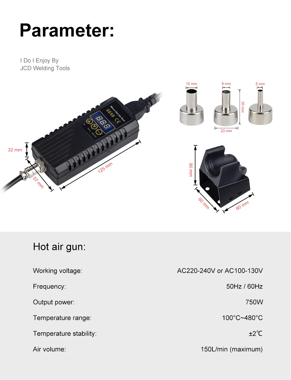 JCD микро реконструкция горячего воздуха пистолет 220 В 110 в 750 Вт Цифровой дисплей паяльная станция Сварка тепловой пушкой инструменты для демонтажа 8858 фен для волос