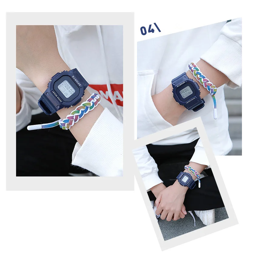 Мужские и женские кварцевые наручные часы с прямоугольным циферблатом сетчатым