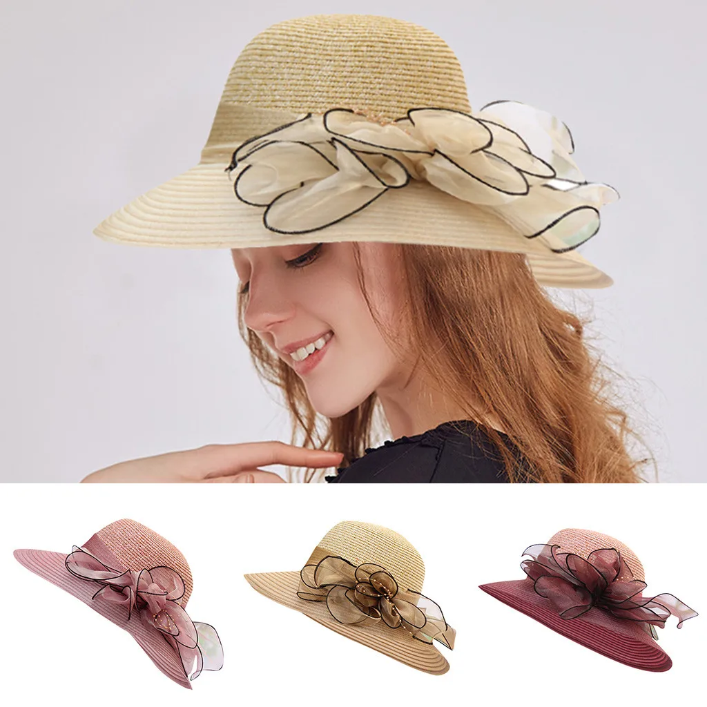 Jaycosin летние модные женские соломенные шляпы от солнца, женские вечерние шляпы с цветочным принтом на шнуровке, украшенные фетрами, круглые шапки, шляпы с бантом