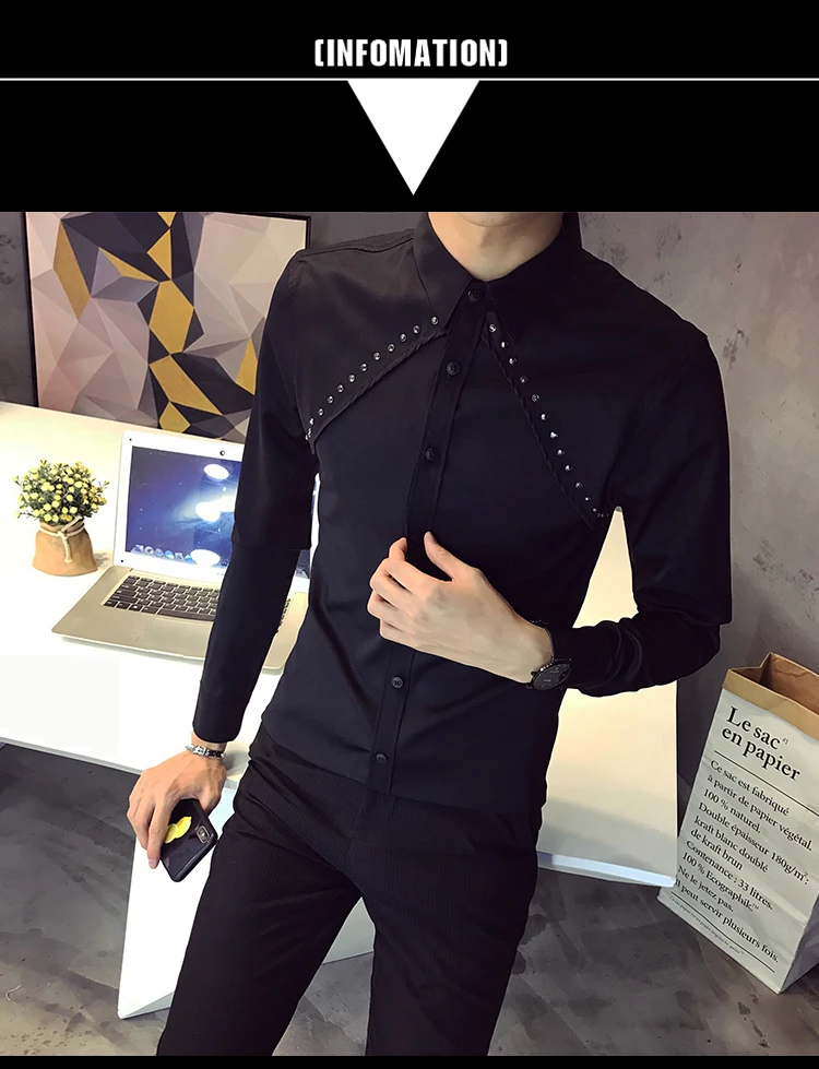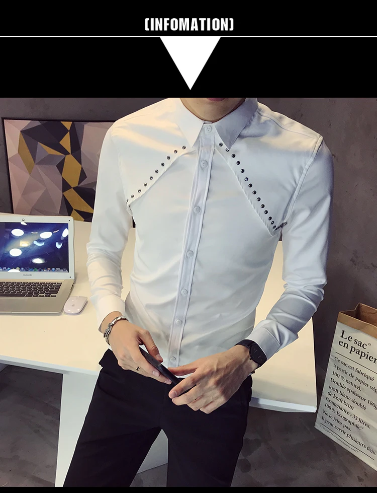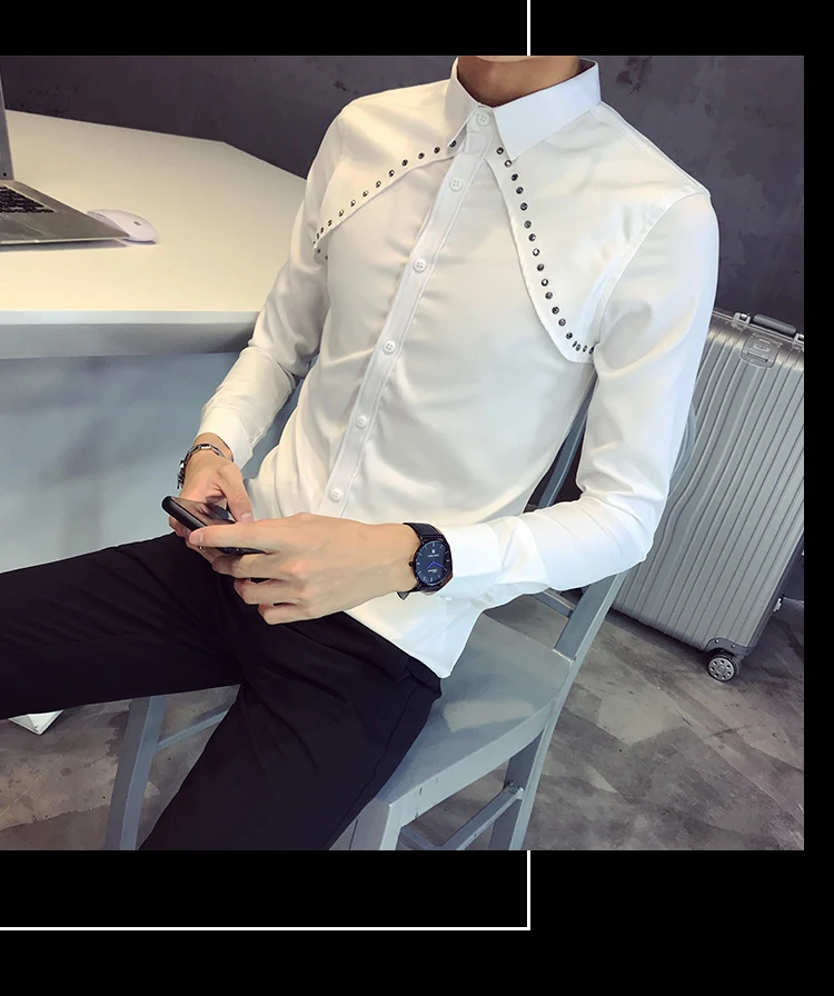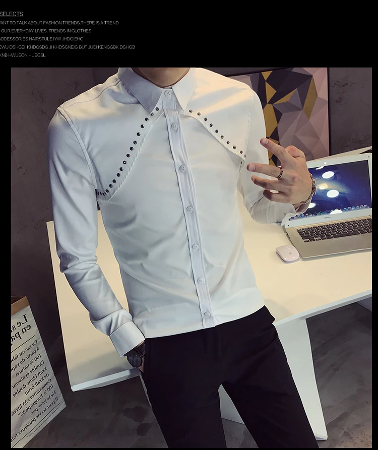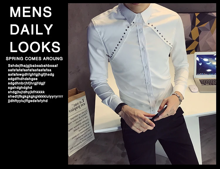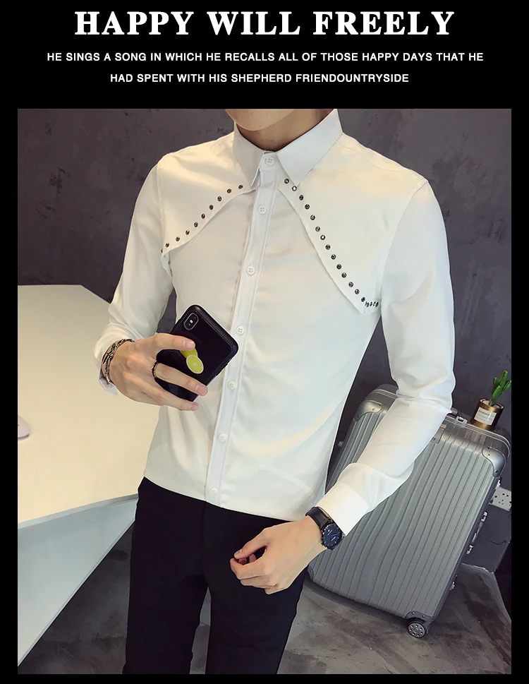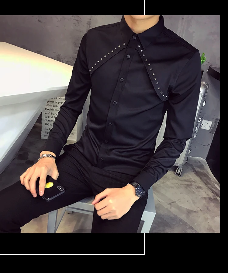 Рубашка мужская с длинным рукавом Повседневная приталенная воротником большие
