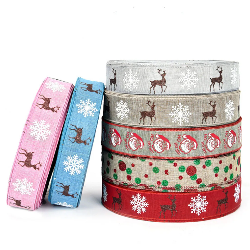 Хлопковая лента ручной работы с принтом, хлопковые ленты на Рождество