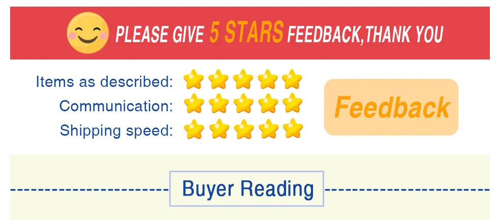 1. Мы поддерживаем стандарты качества и стремимся к 100% удовлетворенности клиентов! Отзывы очень важны, мы просим Вас немедленно связаться с нами, прежде чем дать нам нейтральные или негативные отзывы, чтобы мы могли удовлетворительно решить ваши проблемы.