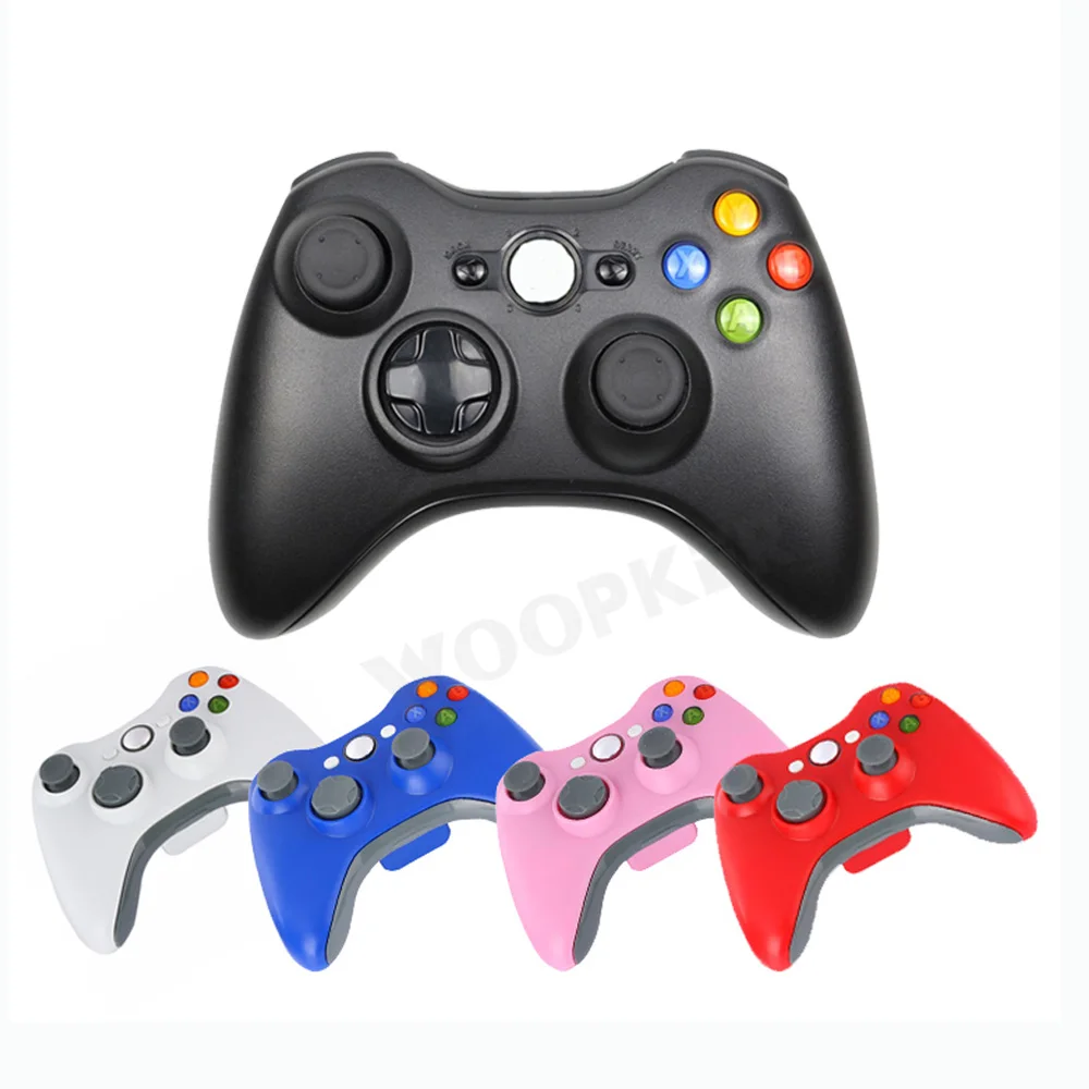 1. Он соединяется с приемником 2,4G, поэтому вы можете подключаться к xbox 360/PC по беспроводной сети. 2. Он также встроен в двойную вибрацию, ему нужны 2 батарейки AA (не входят в комплект), 3. Материал: АБС-пластик 4. Цвет: черный, белый, синий, красный, розовый