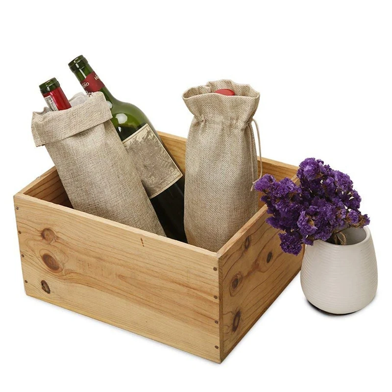 Изготовлено из экологически чистого натурального мешковины, натуральный джутовый материал делает винные мешки многоразовыми и прочными.