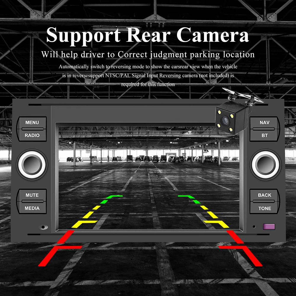 7. Функция ввода камеры заднего вида: необходимо выбрать камеру, автомобиль подключен к реверсивной передаче для автоматического переключения (требуется дополнительно)