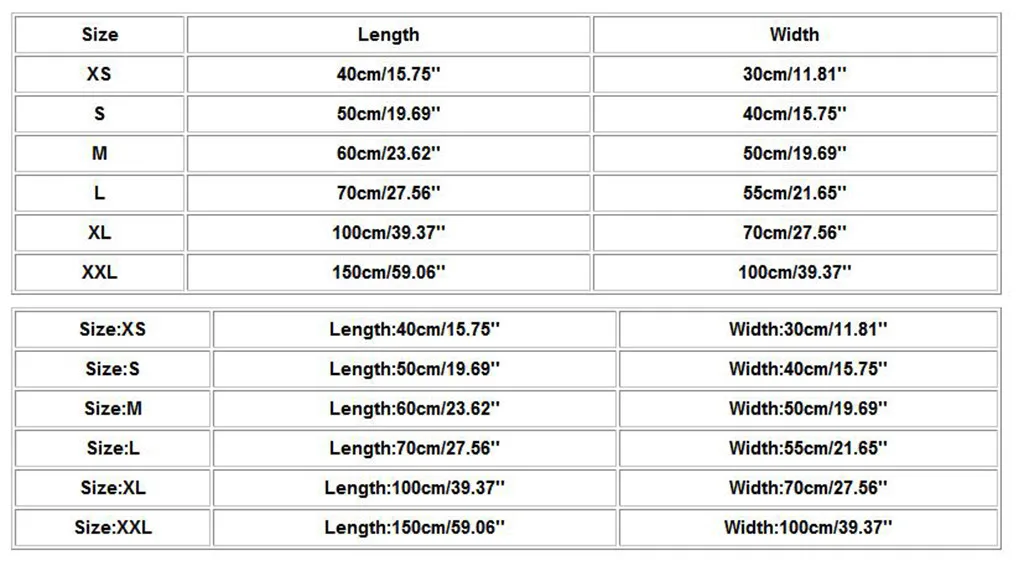| XXL | 150 см/59,06'' | 100 см/39,37'' |