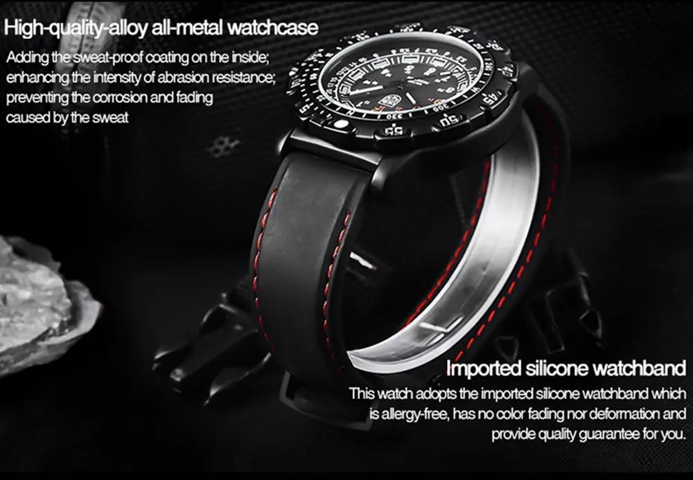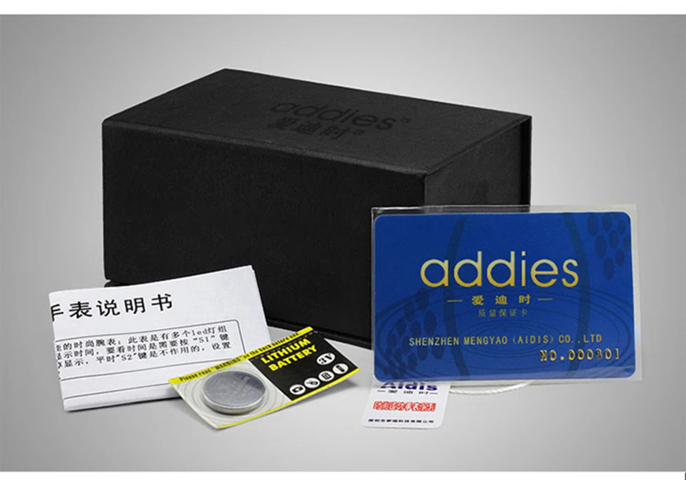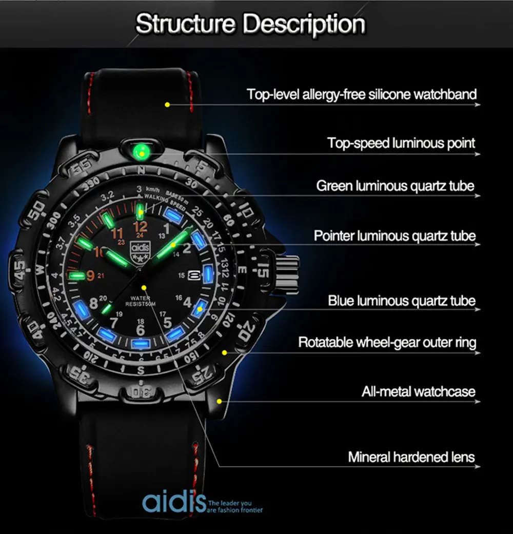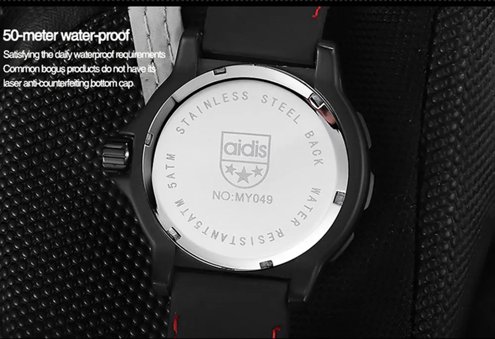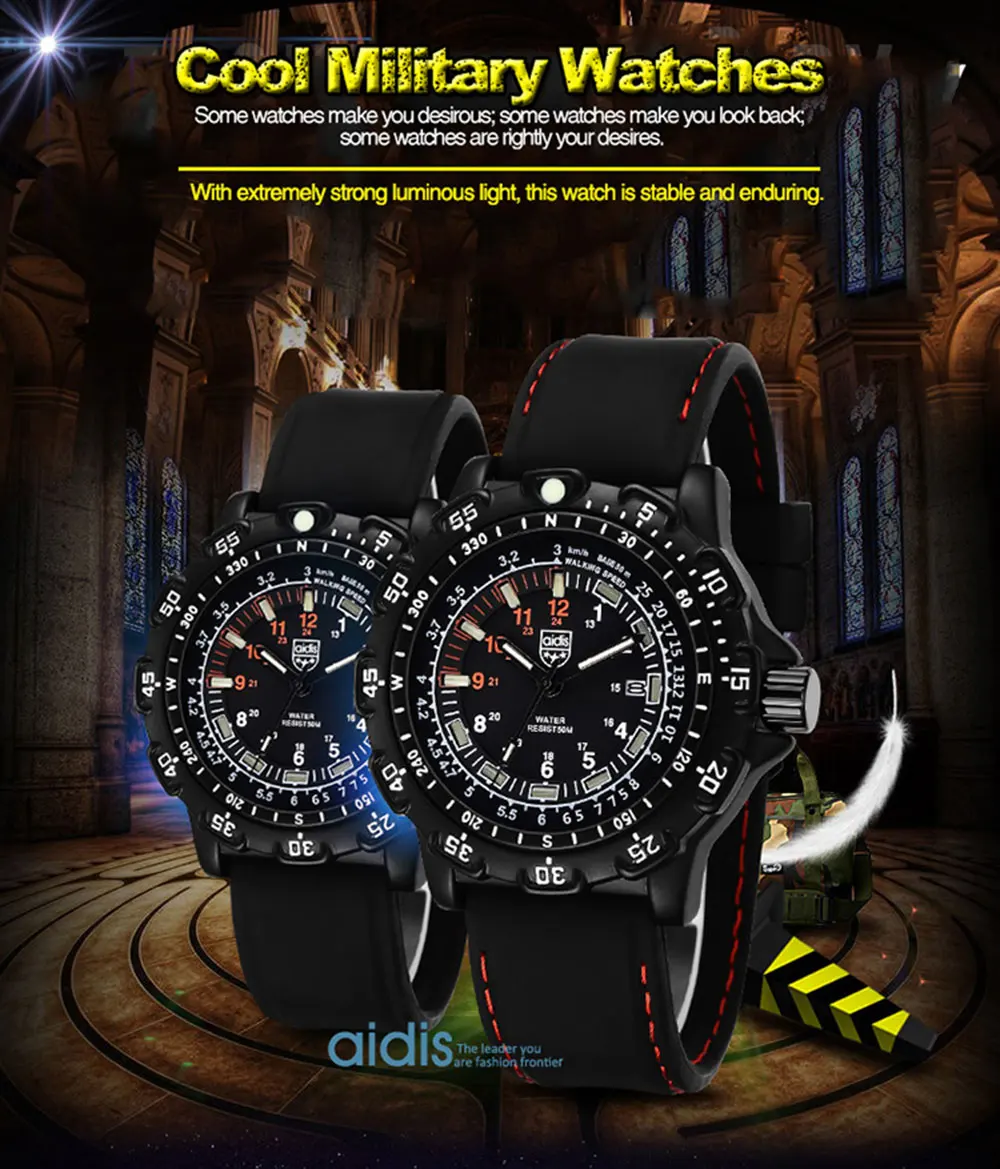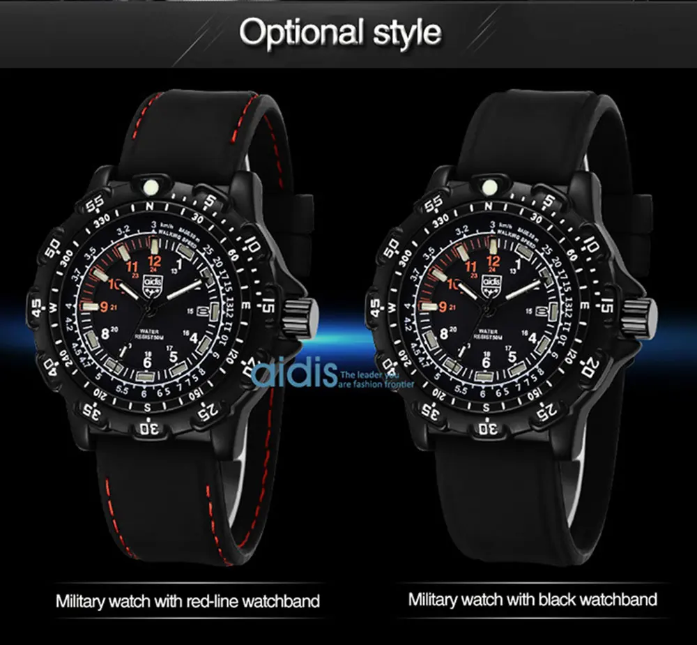 Бренд: addies Модель: MY-049 Стиль: в стиле милитари/Спорт/Досуг Материал ремешка: силиконовый ремешок/высокого качества сплав ремешок Зеркальная поверхность: покрытием Стекло Движение: Японское движение Специальные функции: водоустойчивые на глубине до 50 м, компас, календарь, световой, времени между двух местах, ГРМ, дайвинг, ГРМ Технические характеристики: часы x1, Караульная будка * 1, гарантийный талон * 1, натуральная тег * 1