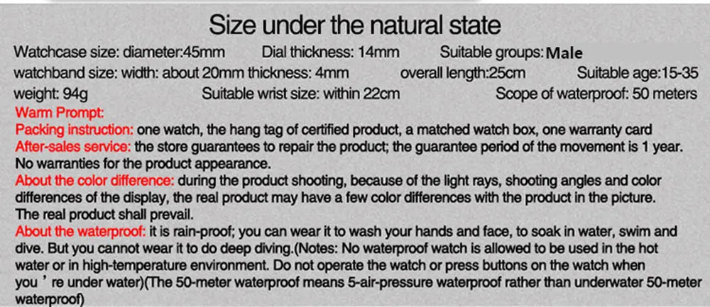 Q: будет ли вращающийся ободок разболтаться после ежедневное использование часы? A: не будет свободно, мы прошли проверку качества Q: Как долго можно использовать часы светятся? A: в часах используется быстрая светильник-поглощения световой трубки. Чем дольше он поглощает светильник в течение дня, а также тем дольше он излучающий светильник в темное время суток. Вопрос: В тех случаях, когда мы сенсорный снова и снова на панель, которая находится в тех случаях, когда мы хит снова и снова к этому ободок с нашими пальцем издаст звук как ползучая? Ответ: нет ненормальный звук
