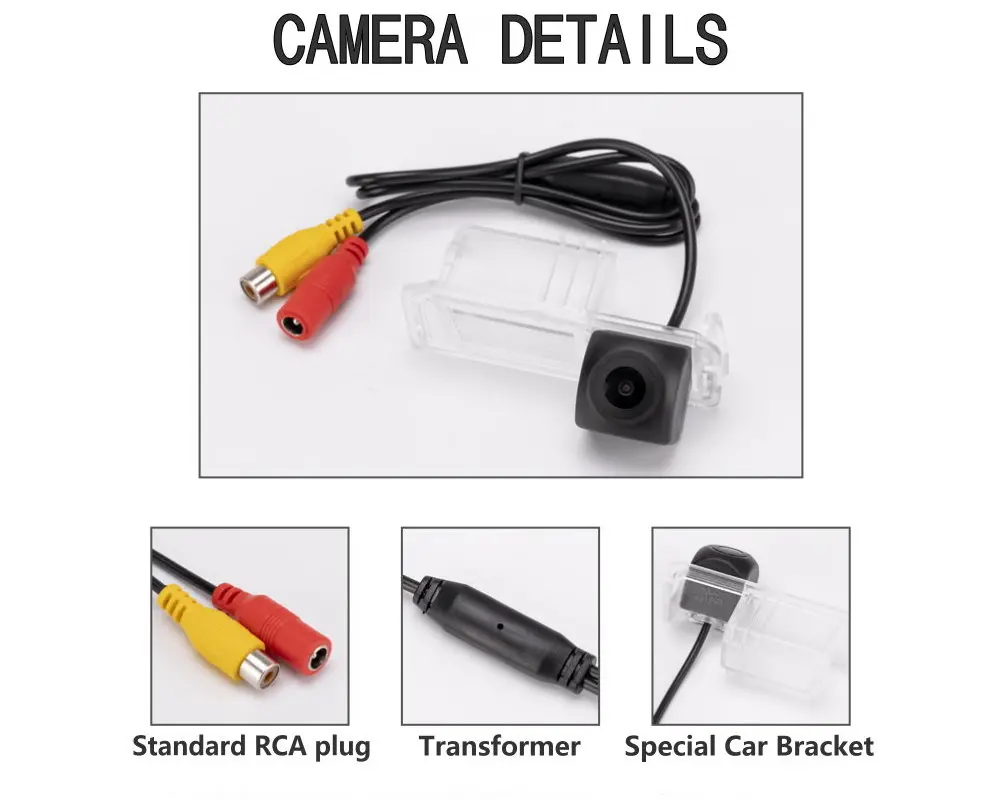 D Высокое разрешение | CCD ночное видение | Водонепроницаемость | Широкоугольный объективЗамените один из ламп номерного знака | На опорные линии парковки | RCA и оригинальный разъемОбратная камера подключается и работает вместе с оригинальным автомобильным экраном