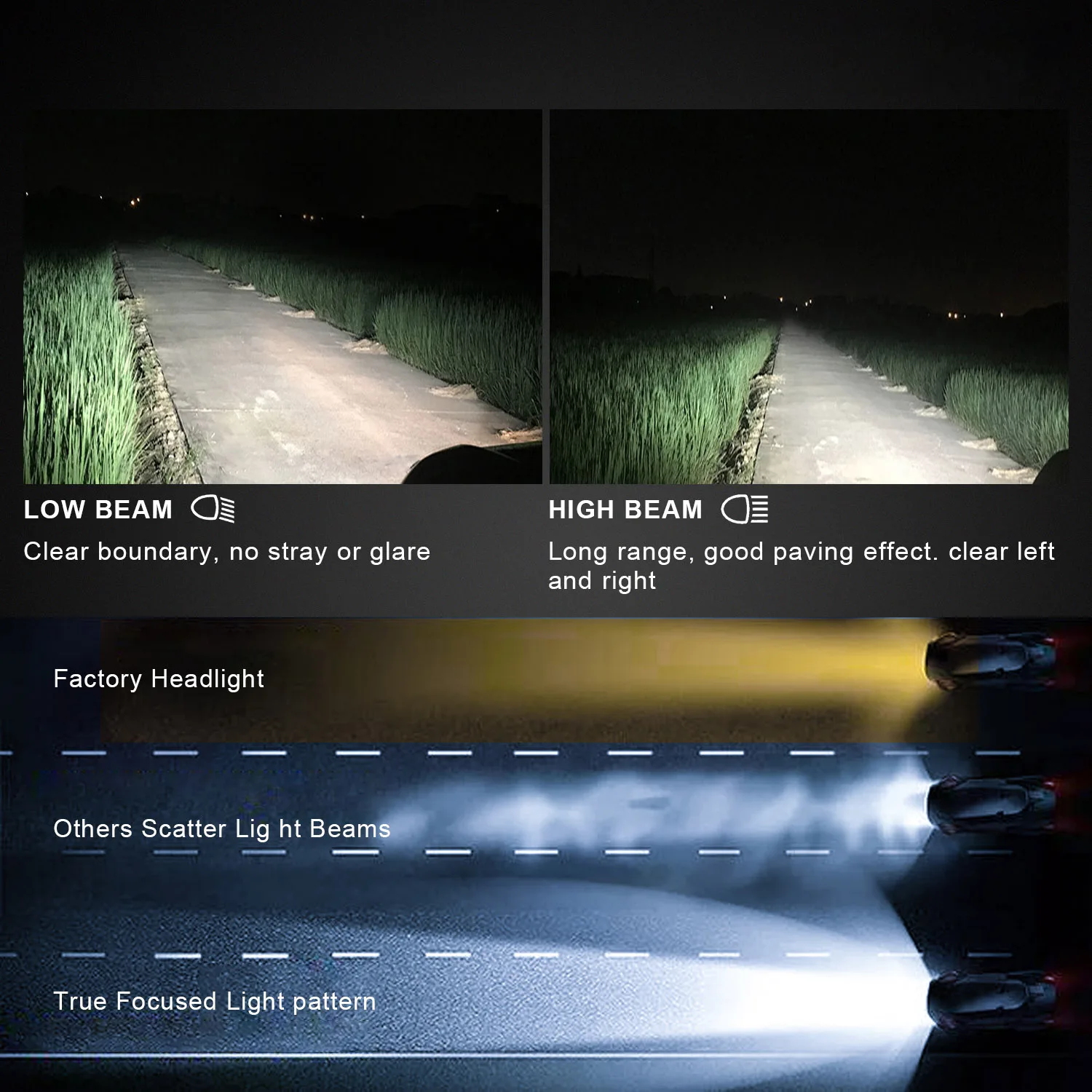 360-градусный светильник распределения: смело принимает ультратонкий боковой дизайн, чтобы обеспечить 360 градусов равномерный светильник без каких-либо темных пятен, обеспечивая более широкий угол обзора. Не слепой, не бликуйте других водителей. Обеспечьте вашу безопасность.