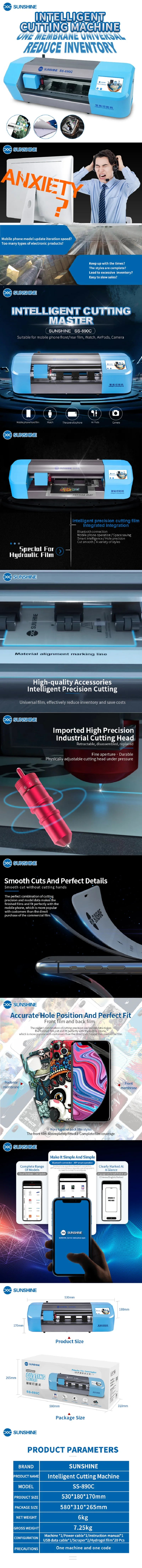 Новейшая SS-890C машина для автоматической резки пленки для телефона, ЖК-экран, задняя крышка, защитная режущая машина для телефона, часы Airpods Camera
