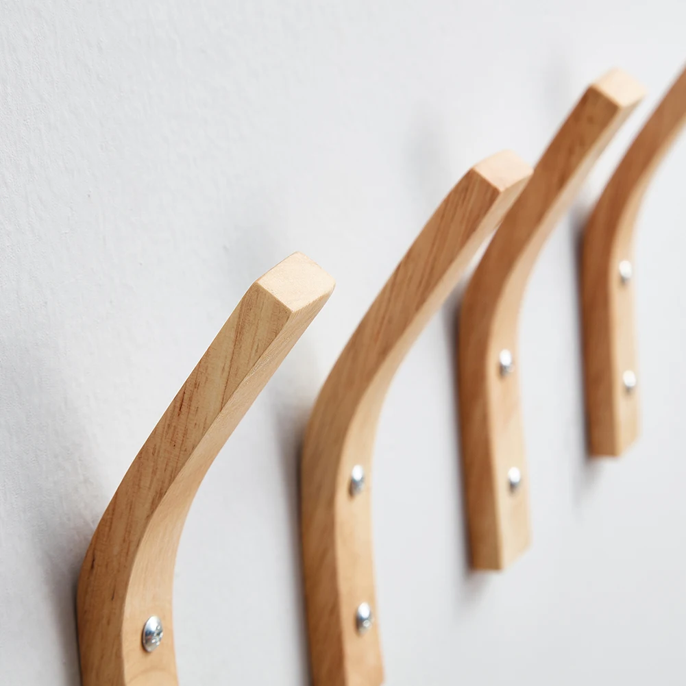-Крючки для пальто из бука с крепежными настенными стеллажами. Помогает держать много вещей висящими. Не беспокойтесь о том, что они упадут. Максимальная нагрузка составляет 11 фунтов.