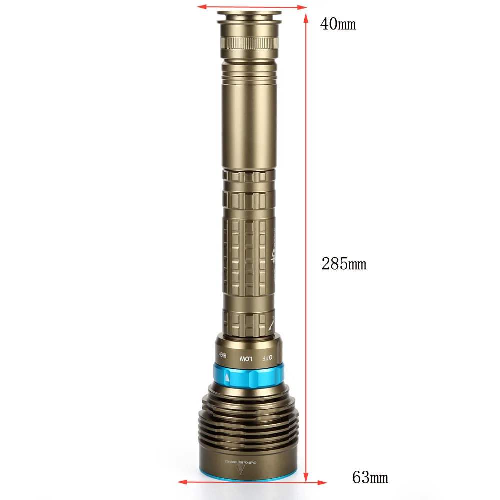 Корпус этого фонарика изготовлен из авиационного алюминиевого сплава, который имеет очень прочную конструкцию. * Необходимые мобильные осветительные инструменты для профессиональных занятий дайвингом, магнитных фонарей для дайвинга, фар в основном, требуют отличной водонепроницаемости, общего обучения дайвингу, глубокой 30-150 метров конфигурации, для глубокого погружения водонепроницаемый магнетронный плавный диммер рекомендуется иметь высокую яркость и хорошее время подсветки, а также время выдержки является подходящим. Есть различные конфигурации источника цветной светильник по мере необходимости, и вспомогательное оборудование (например, hand s * Применимые условия: Повседневная переноска, спелеология, кемпинг, патруль, дайвинг, охота, туризм, поиск, Самозащита, ночная рыбалка, Ночная езда * Когда геологоразведка в области, оригинальный лесной осмотр и т. д., мобильные инструменты освещения большие, яркость высокая, прожекторное освещение является подходящим, водонепроницаемые характеристики хорошие, срок службы батареи должен быть больше, и при необходимости, оснащен крупномасштабным оборудованием питания, Нужно иметь стробоскопическую функцию поиска SOS Dun. Описание продукта: Применение 7-лампы XM-L L2 светодиодный фонарик Тип источника: светодиодный светильник XM-L L2 Светильник Цвет: холодный белый светодиодный светильник Водонепроницаемость: Глубина погружения до 100 метров (80 датчиков-100 метров) Конфигурация батареи: 2x18650 или 2x26650 или 3x18650 или 3x 26650 Вход напряжение: 8,4 V Тип переключателя: магнетронное вращение NO / off Некоторые режимы: три режима [Низкий/Высокий/Стробоскоп] Яркость: до 7000 люмен Светодиодный срок службы: 100000 часов Материал: алюминиевый сплав Стекло: закаленное стекло Вес (г): 480 Посылка включает в себя: 1x 7x XML-L2 / T6 светодиодный Дайвинг светодиодный фонарик (аккумулятор в комплект не входит)