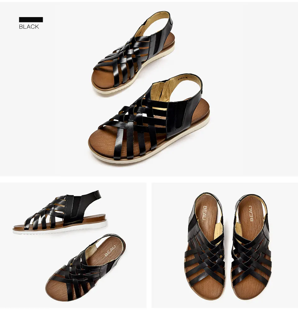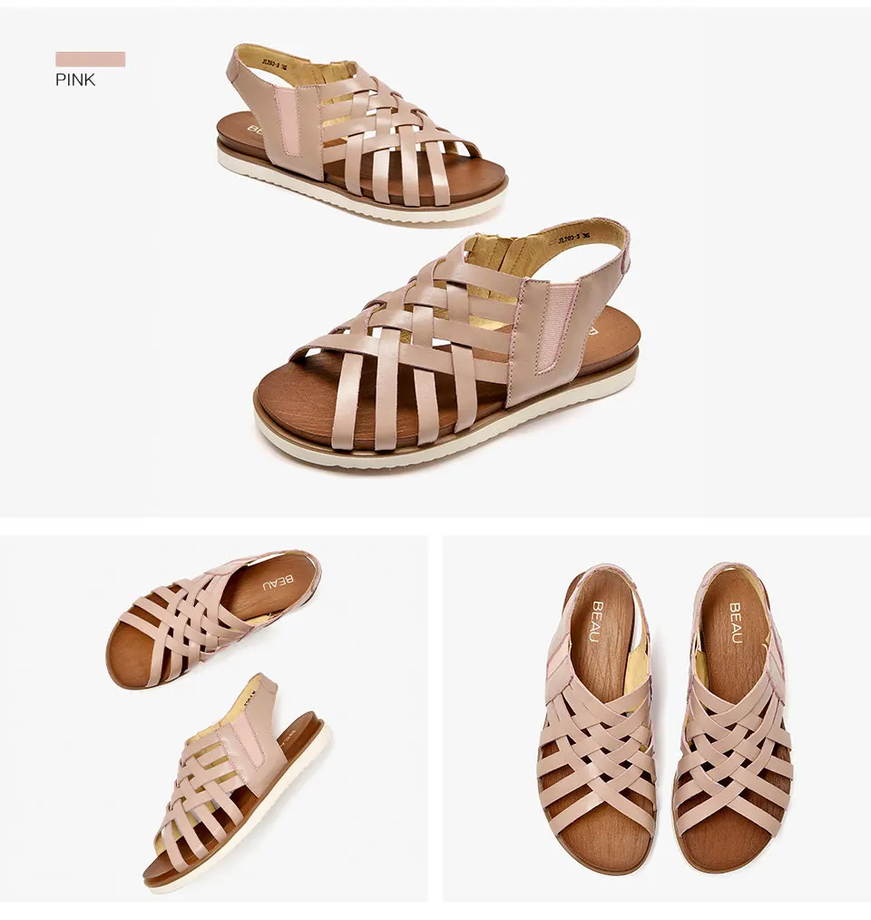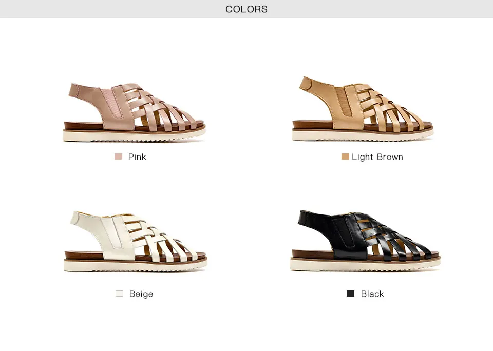 Фирменная Новинка Туфли гладиатор, с открытым носом и застежкой Верхняя часть из натуральной телячьей кожи Удобная подкладка из свиной кожи PU Стелька из пены с эффектом Нескользящая подошва из вспененного этилвинилацетата Обувь на Плоском Каблуке Обувь с коробкой Ручной работы Высота каблука: 2,9 см Доступные цвета: черный, бежевый, розовый, коричневый, светильник