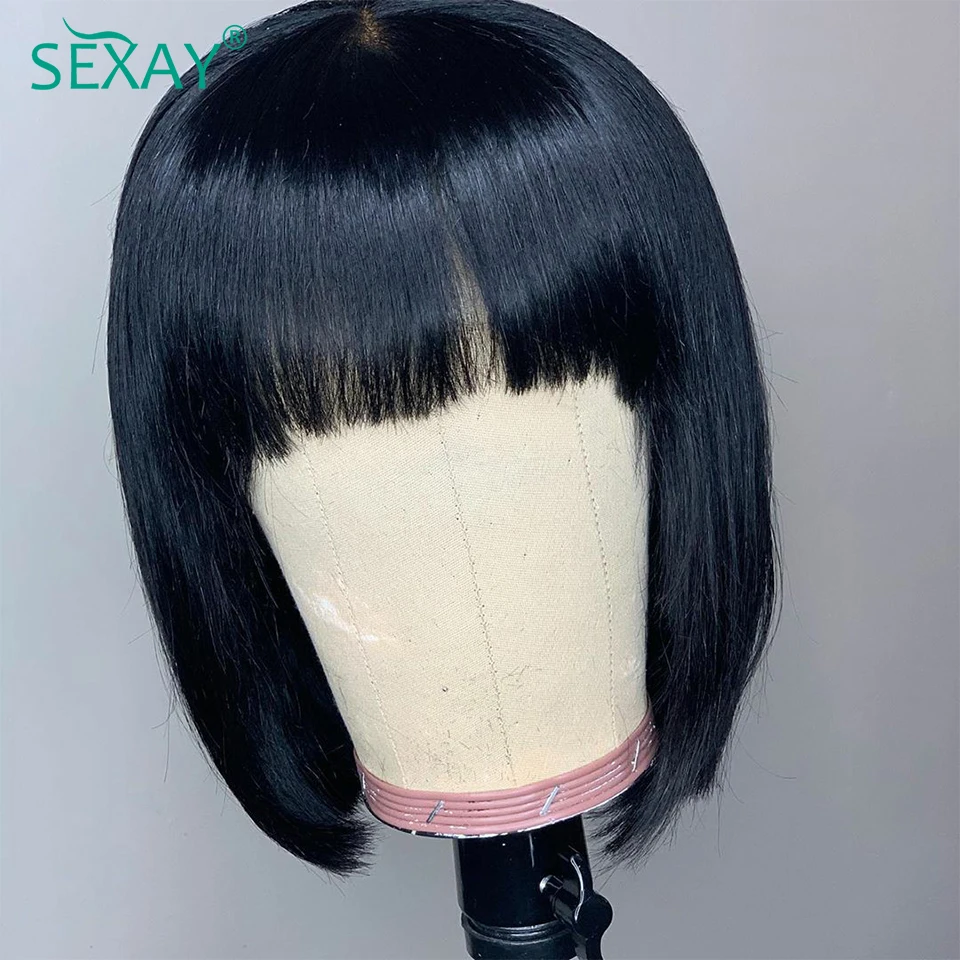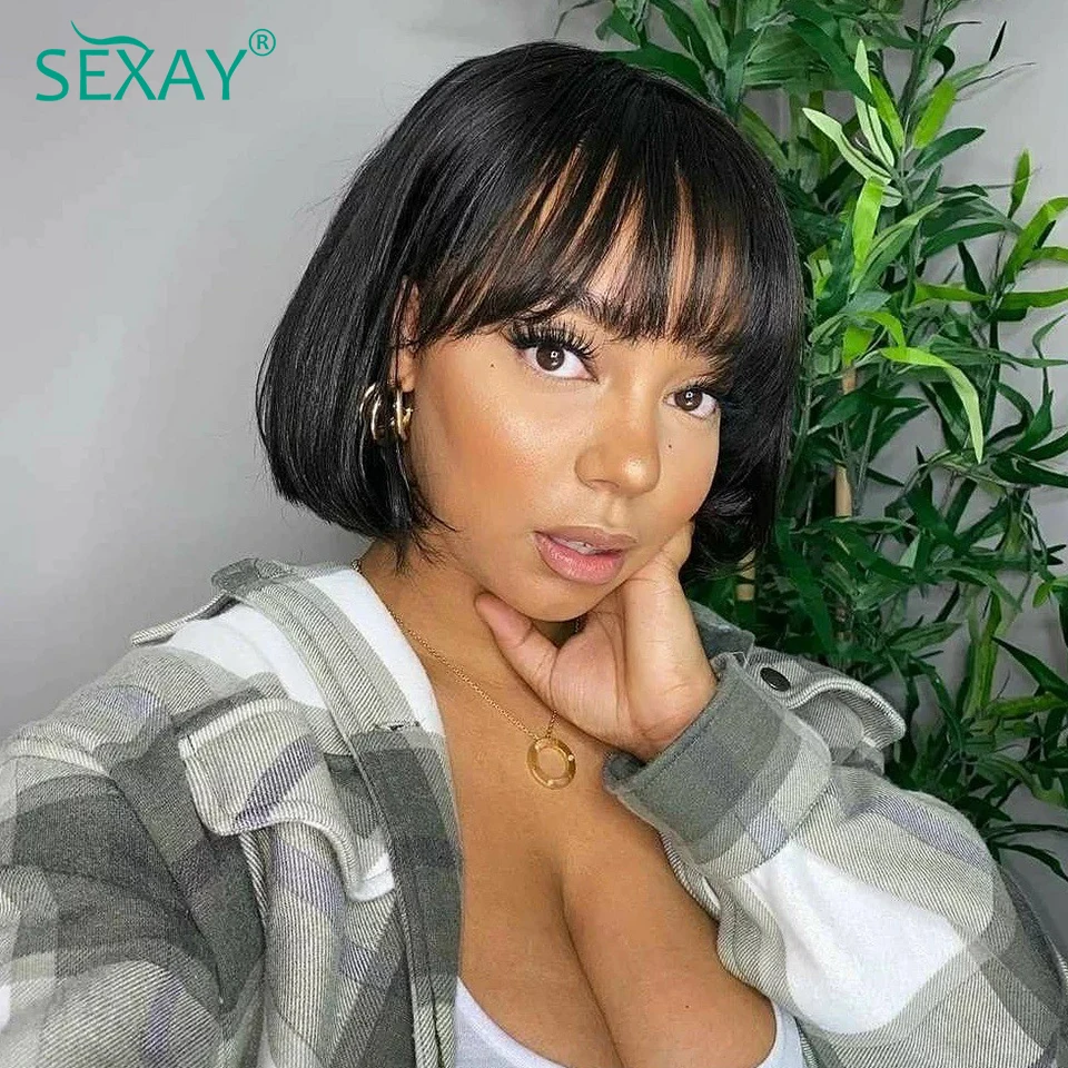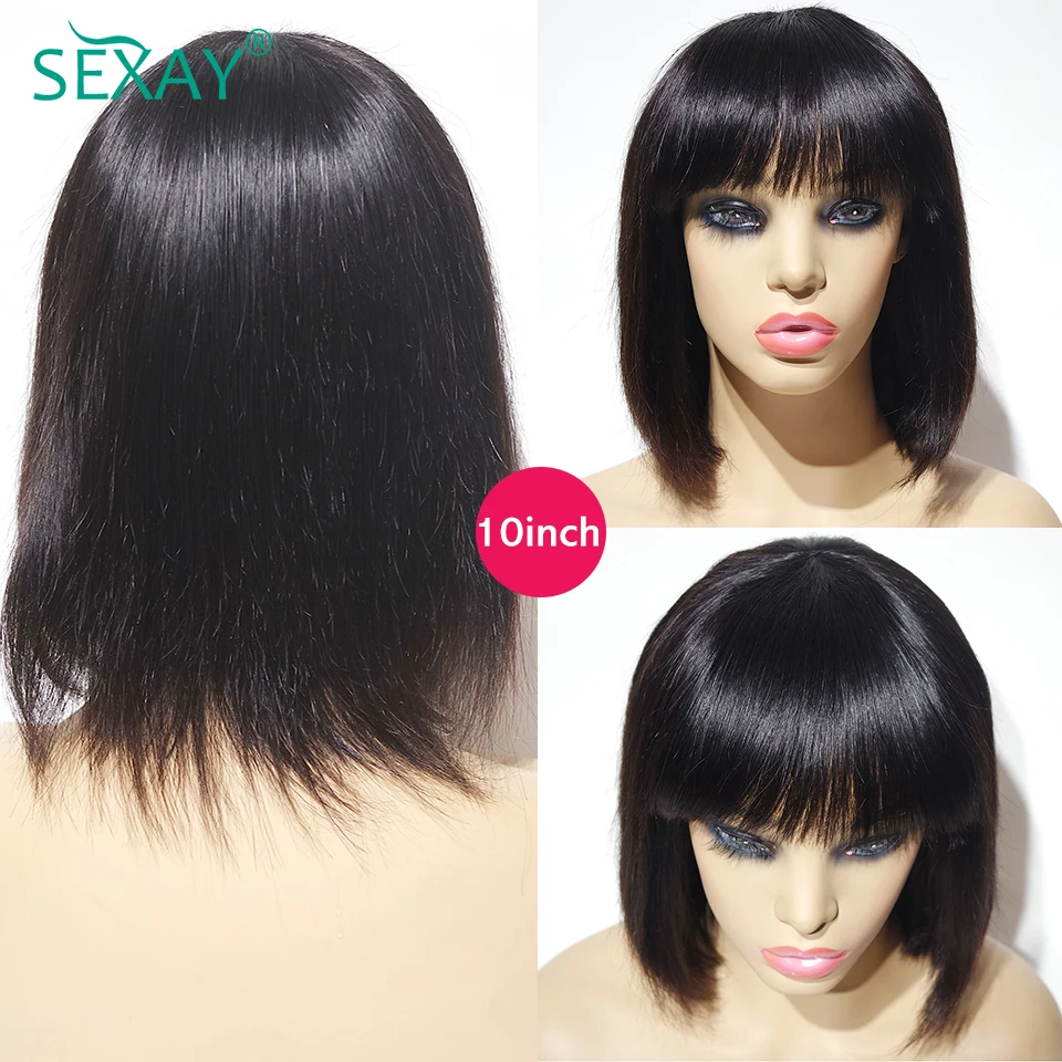 Sexay Bone прямые парики с челкой, короткие, 8, 10, 12, 14 дюймов, коричневые, эластичные, 180%, полный машинный парик Remy, парики из человеческих волос, распродажа
