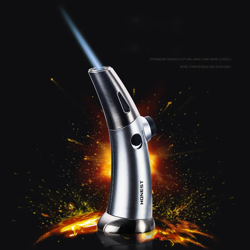 Honest Table Blow Torch Lighter Refillable Windproof Straight Flame Jet Gun Lighters with Fire Lock Free Your Hands for Outdoor Cooking BBQ (Butane Gas not Included)