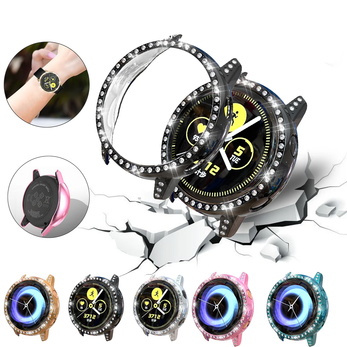 Алмазный чехол для Samsung galaxy watch active/actvie 2, 44 мм, 40 мм, бампер для часов active2, защитная пленка для ПК, аксессуары