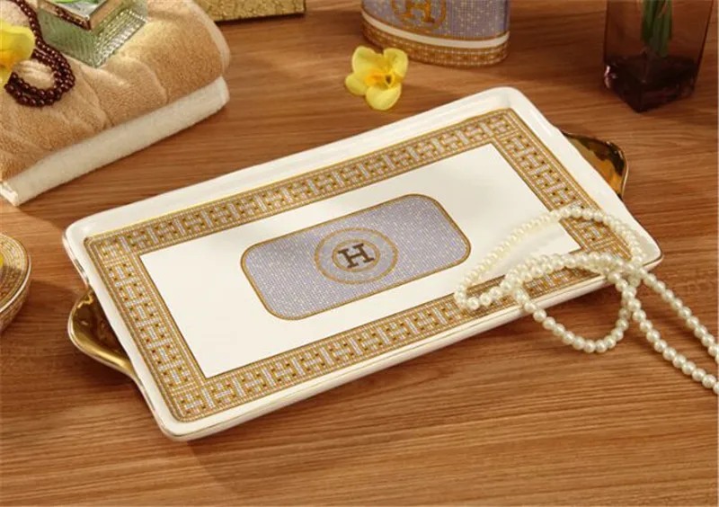 Кухонный керамический поднос прямоугольная фруктовая Тарелка Для Закуски Блюдо чайная тарелка ванная комната косметический поднос для хранения украшения Европейский стиль