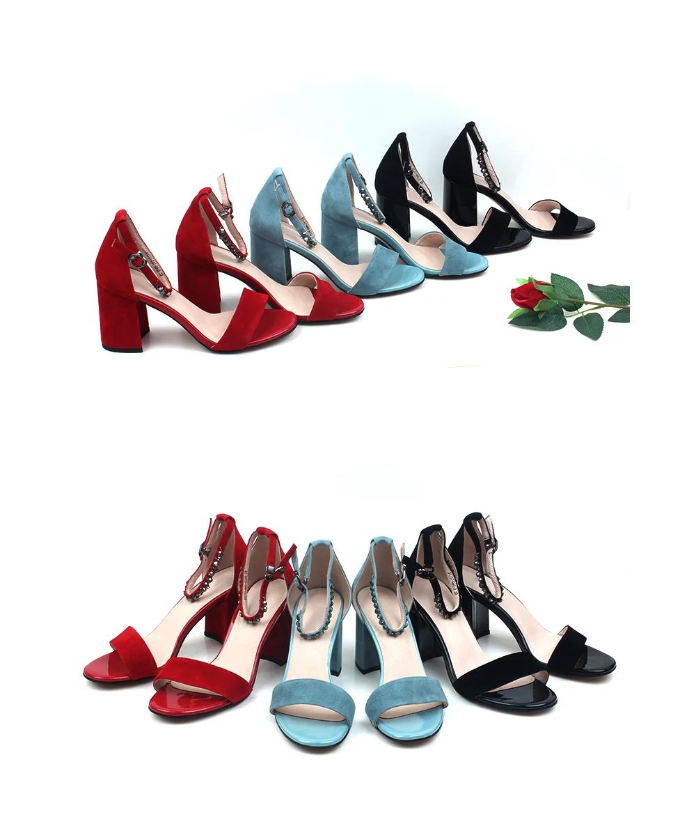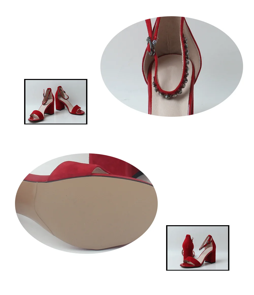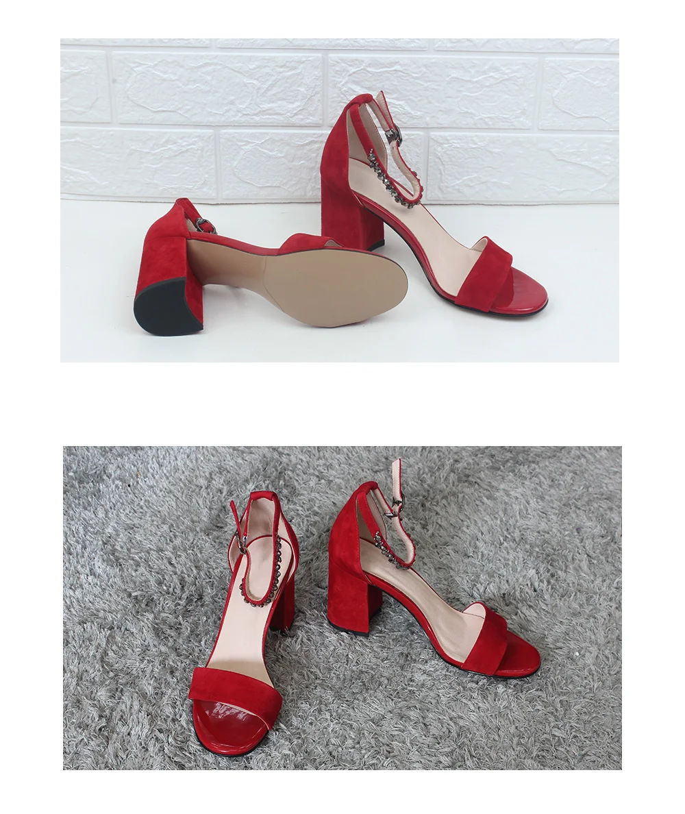 Новинка; Женские босоножки с пряжкой и ремешком на щиколотке; Обувь на толстом каблуке; Сезон лето 2020 года; Красные замшевые вечерние туфли; Классическая женская обувь