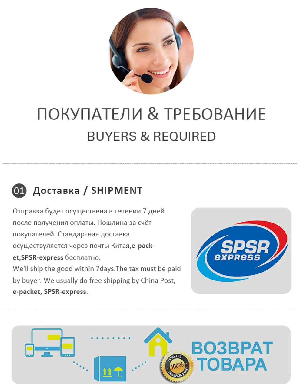В1: Оптовая и Прямая поставка приветствуются? Для оптовой продажи мы предлагаем скидку или бесплатную Экспресс-доставку. Для дропшиппинг, мы могли бы отправить товары непосредственно вашим клиентам и не оставить информацию о нас, если вы хотите. В2: Как я могу отследить свою посылку? Вы можете отследить свою посылку на указанном ниже сайте с помощью вашего контрольного номера отслеживания Www.17track.net/en //global.cainiao.com/ (Скопируйте в браузер, чтобы открыть) В3: Что я могу сделать, когда время защиты покупки истекает? Если время защиты вашей покупки истекает. Пожалуйста, свяжитесь с нами, и мы поможем вам потратить его. Так что ваши деньги не поступят на мой счет.