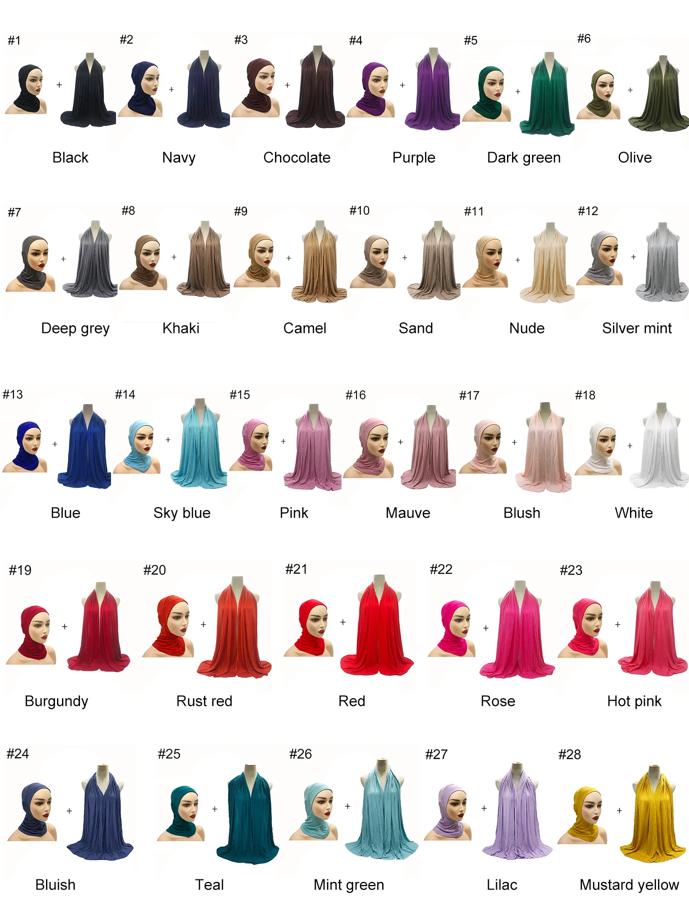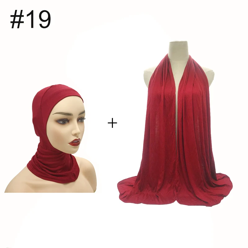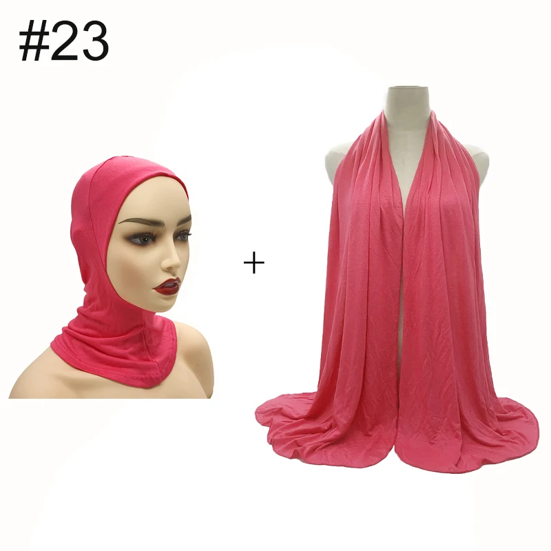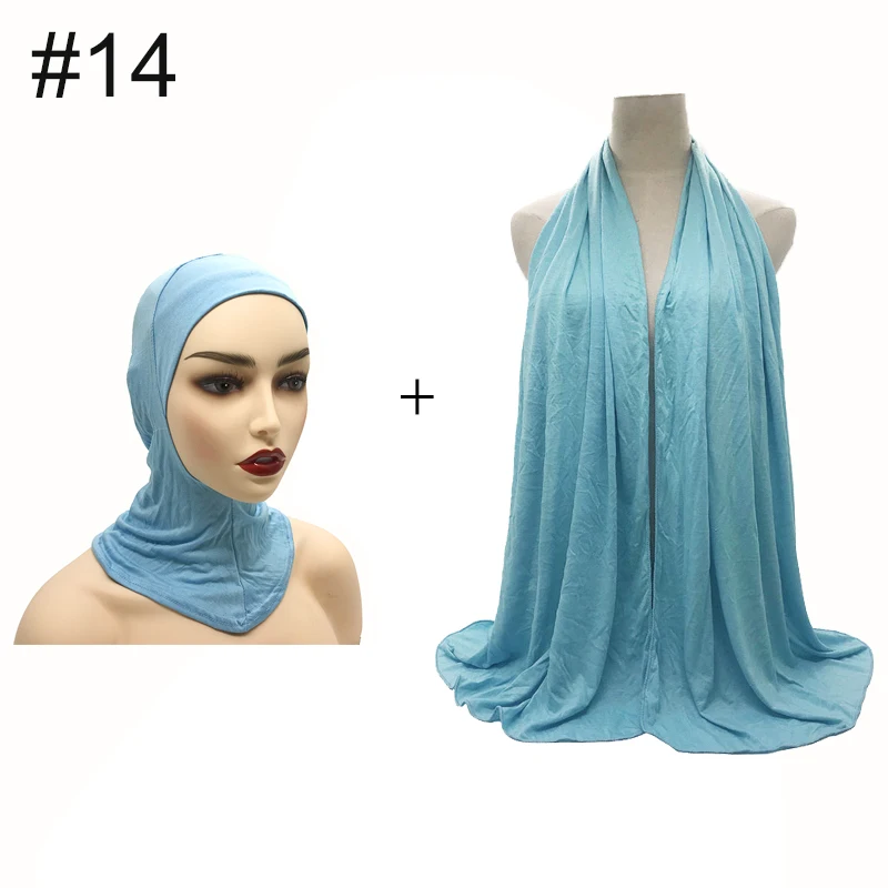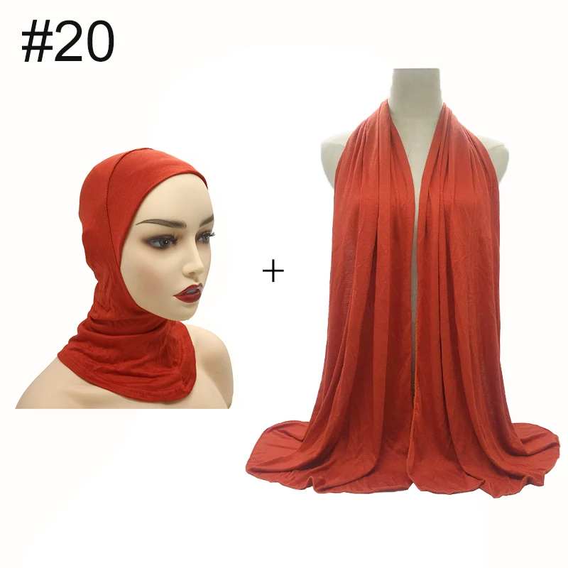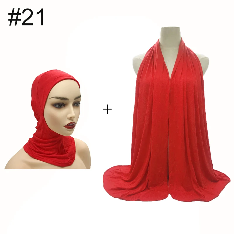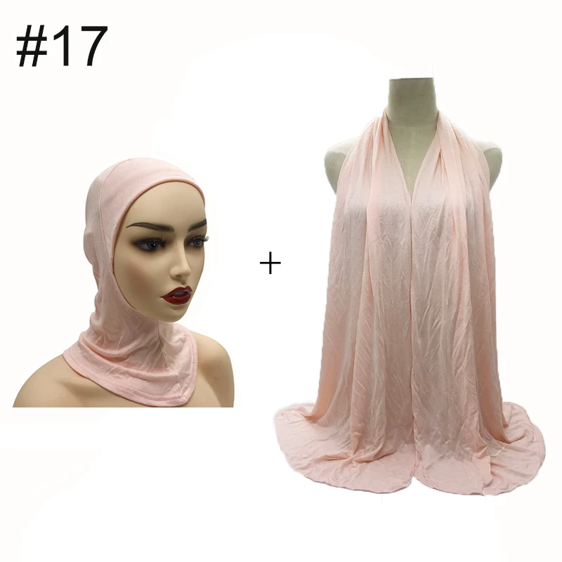 1 Set Women Stretch Cap and Scarf set Bonnet Neck Cover Modal Headscarf Femme Muslim Bandana Foulard Hijab shawl set