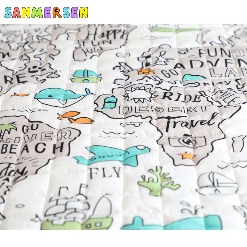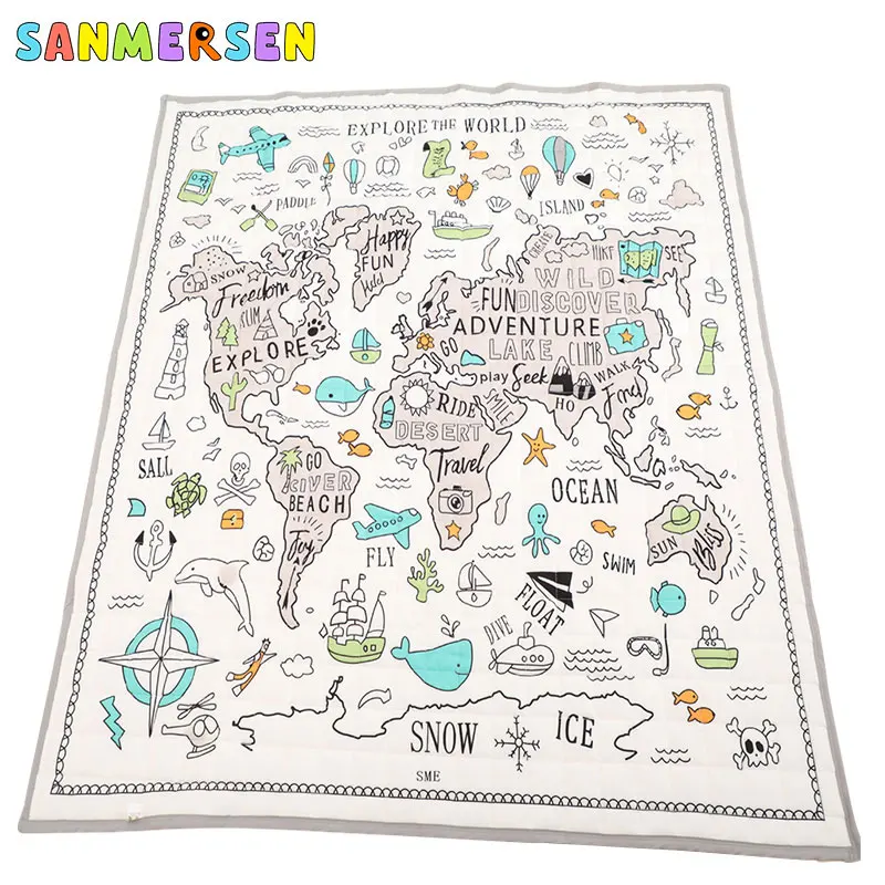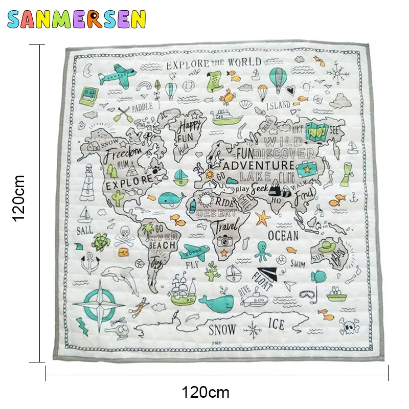SANMERSEN 1,2 м детский коврик для ползания, морской граффити, хлопковый детский коврик для игры с картой, детское одеяло, напольный ковер, игровой коврик для детей