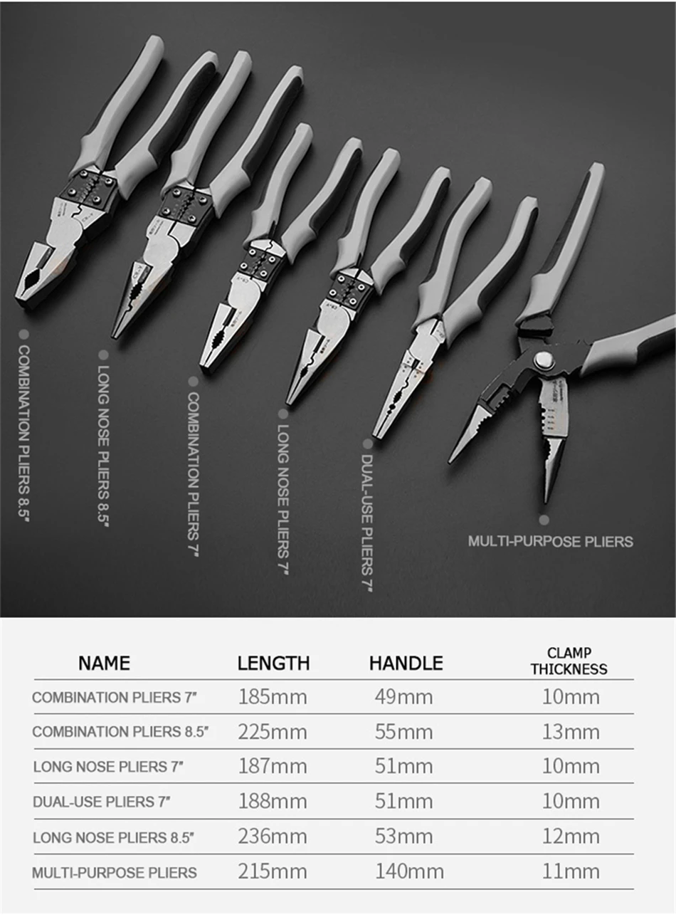 Популярный диапазон комбинации, длинный нос, диагональная резка и пазовые шарнирные плоскогубцы будут покрывать многие автомобильные, аппаратные, промышленные и DIY
