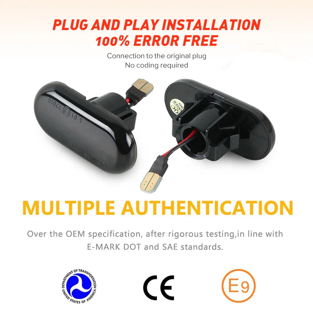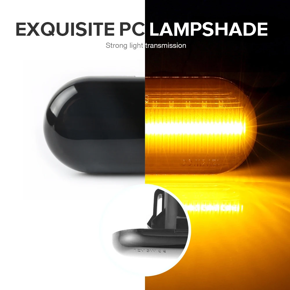-Изготовлены из высококачественной янтарной светодиодной чипы с корпусом из АБС-пластика. -Специальная последовательная мигающая конструкция для сигнала поворота. -Линза темного дыма с 18 SMD СВЕТОДИОДНЫЙ боковой маркер. -Поставляется с крепежными зажимами для защиты от тряски и плотно крепится на транспортные средства. Предназначен для восстановления вашего автомобиля в его оригинальном виде. -Изменение внешнего вида с более высокой производительностью освещения. -Проще в установке: OE заводской стиль, Plug-n-play операции, нет необходимости сверлить или изменить, использует существующие болтовые отверстия для установки, низкое энергопотребление.