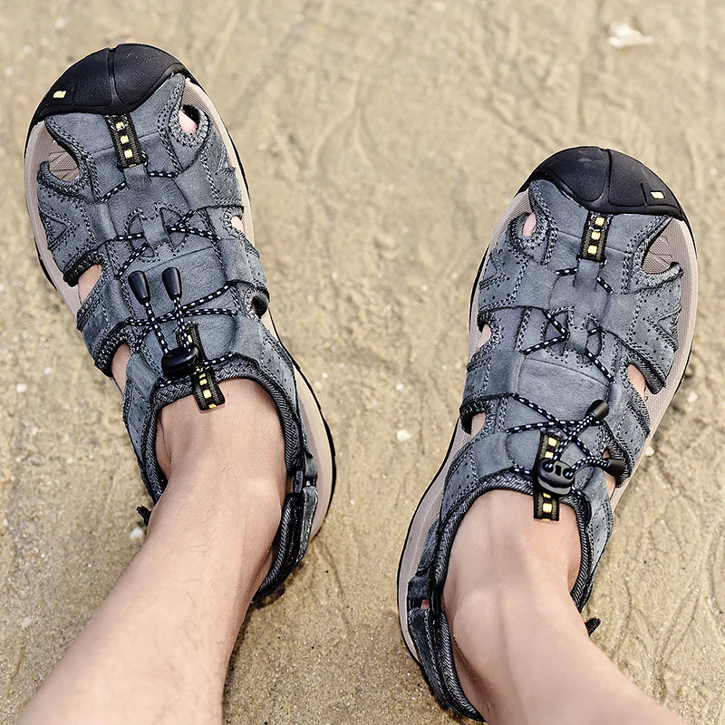 Мужские сандалии 2020 г. Летние повседневные кожаные туфли на плоской подошве