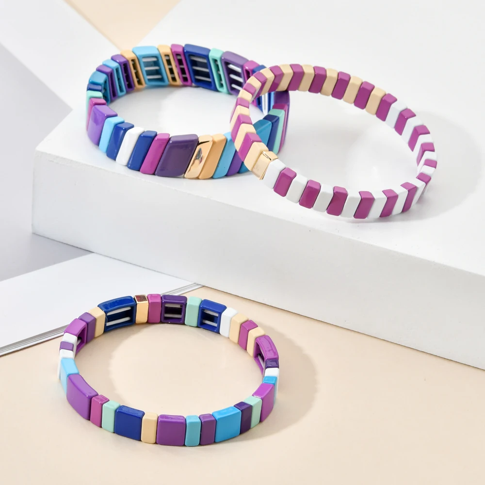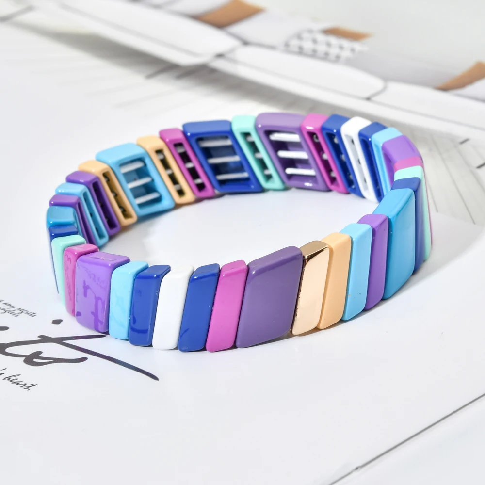 Популярные модные разноцветные браслеты с эмалью, цветные эластичные браслеты, цветные модные браслеты для женщин, укладка, сплав, плитка, браслет, Pulsera