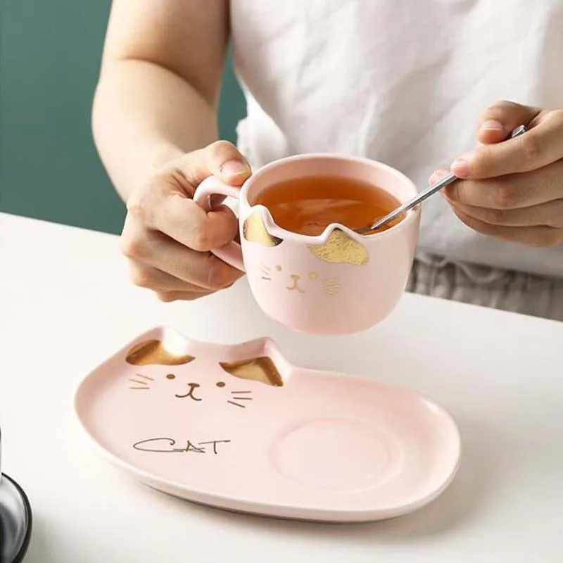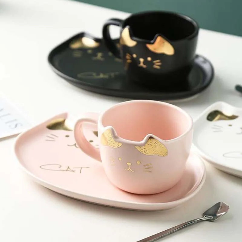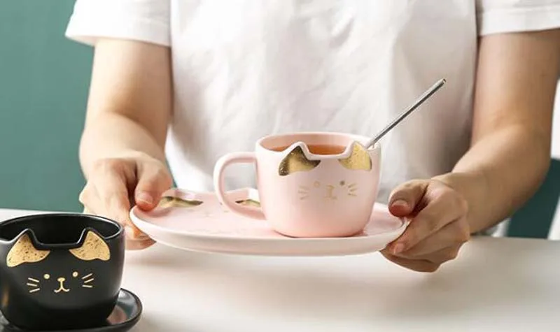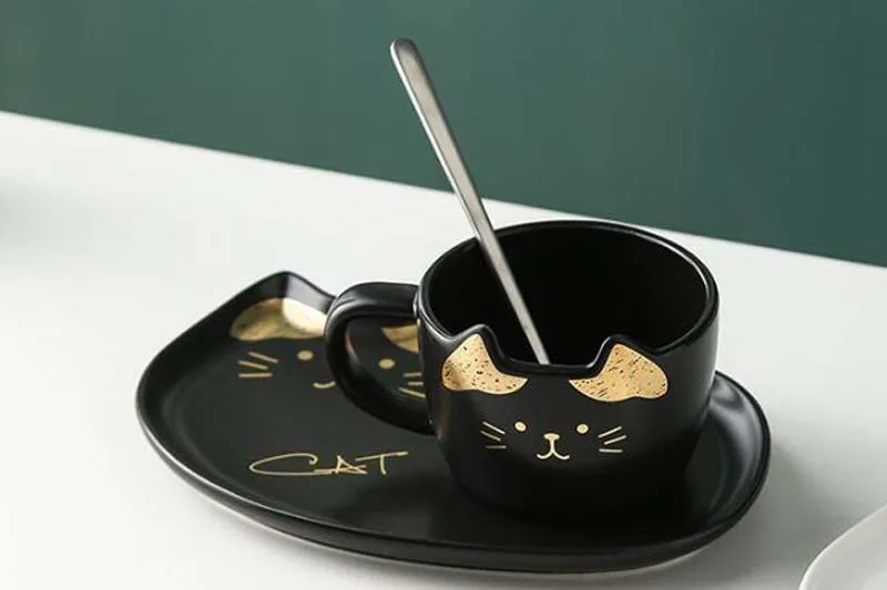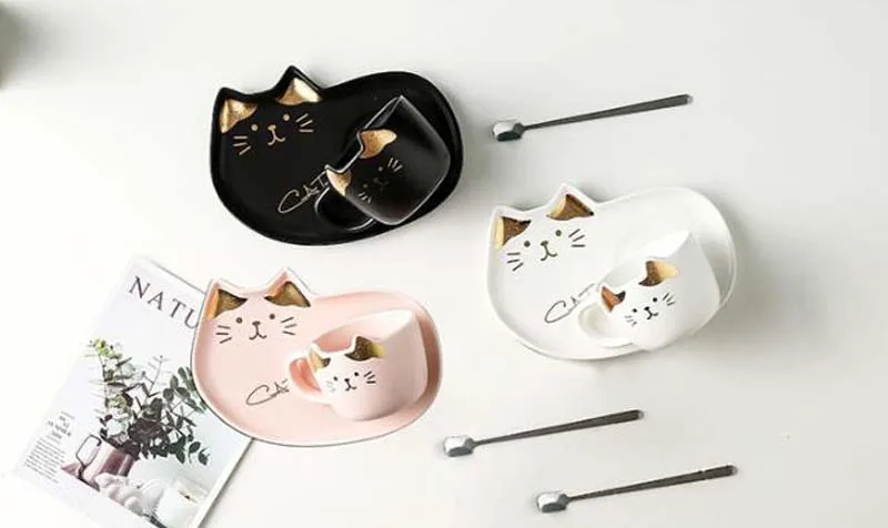 Высококачественная керамическая кофейная чашка с кошачьим принтом, набор кофейных чашек, простой европейский стиль, чашки для капучино, Офисная домашняя чашка для латте