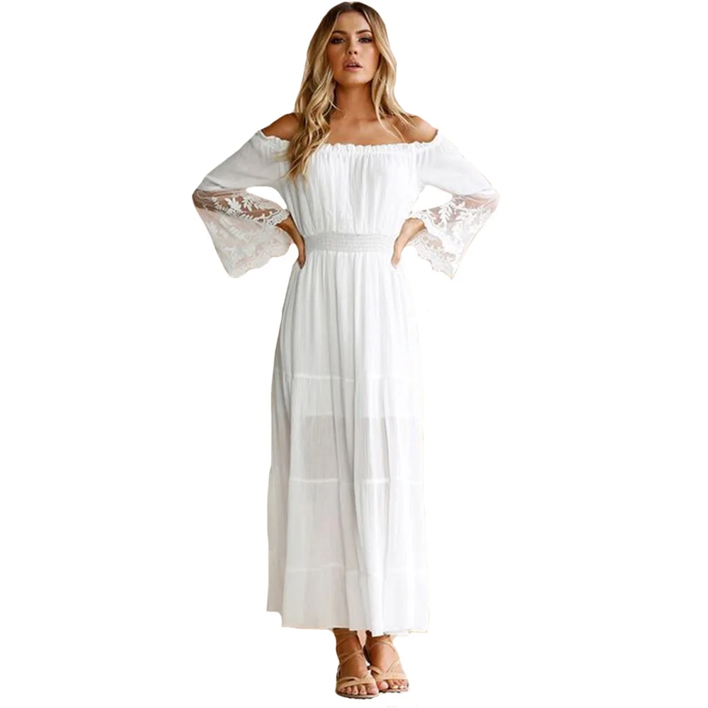 Женское белое платье с длинным рукавом, шифоновое длинное платье с расклешенным рукавом, праздничное платье для вечеринки