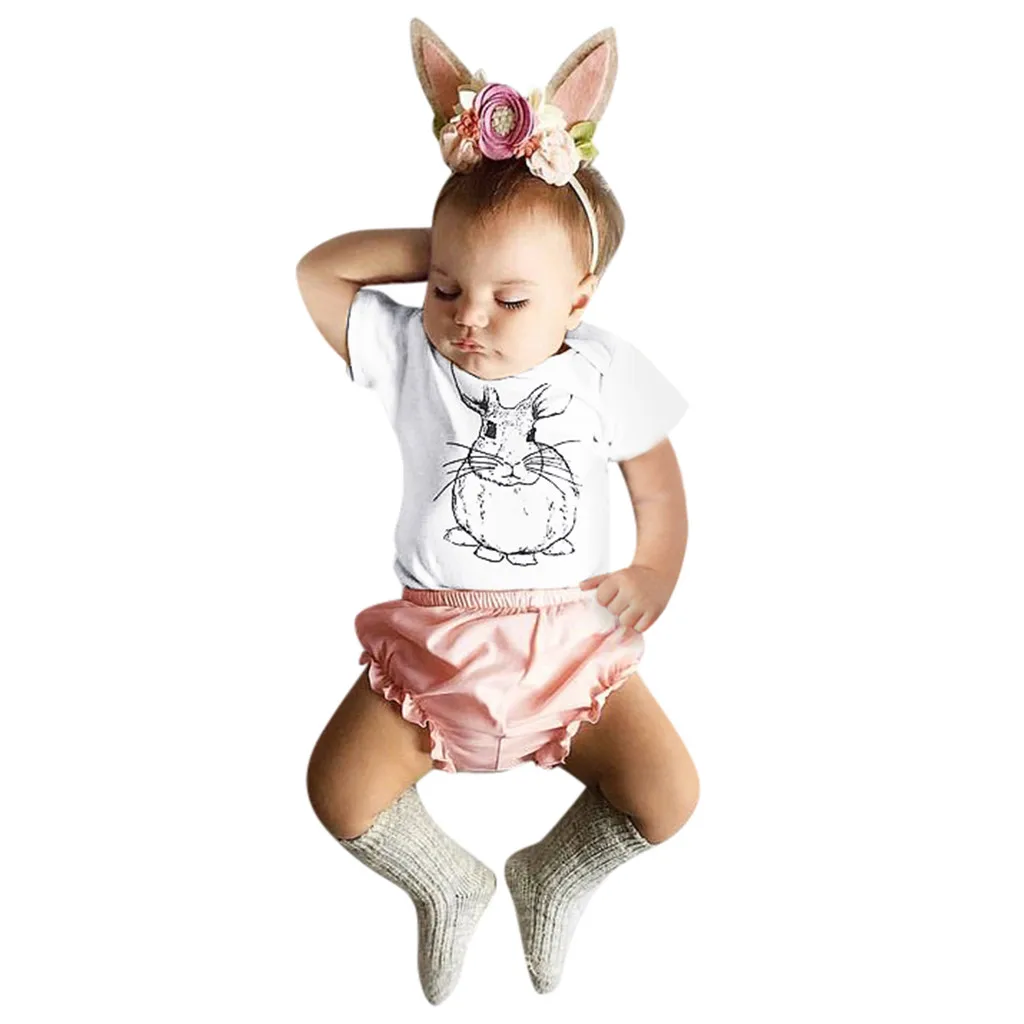 Пасхальный костюм Банни милый мультяшный кролик, чистый цвет, комбинезон, шорты, тюрбан с принтом, комплект детской одежды 40 *