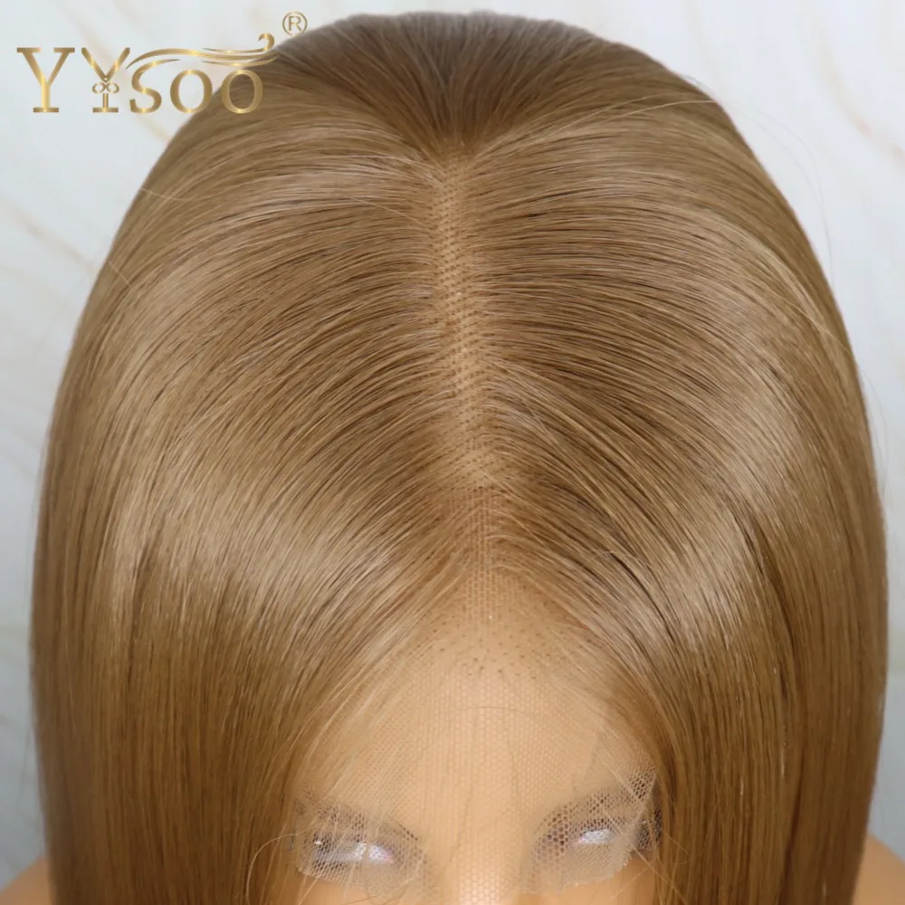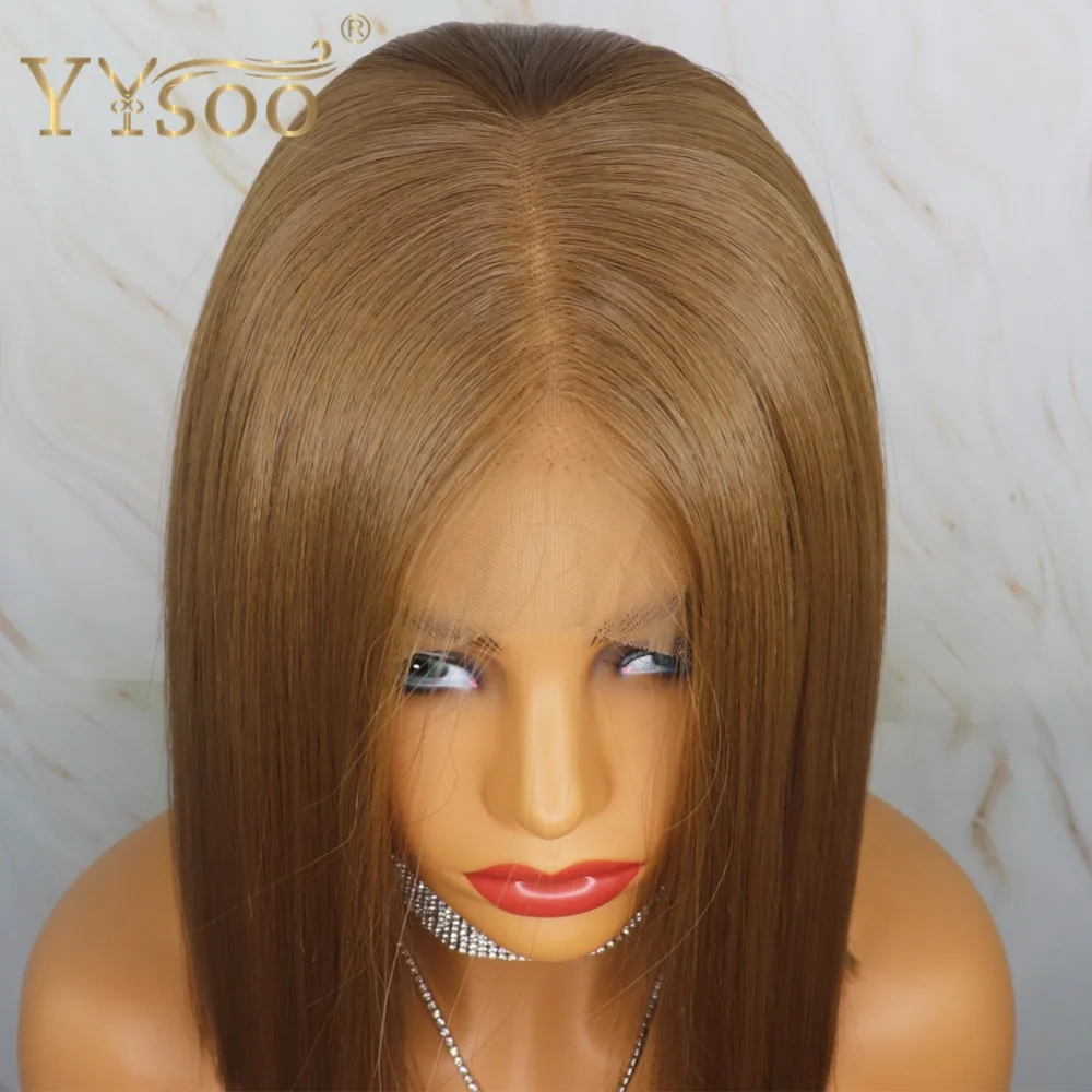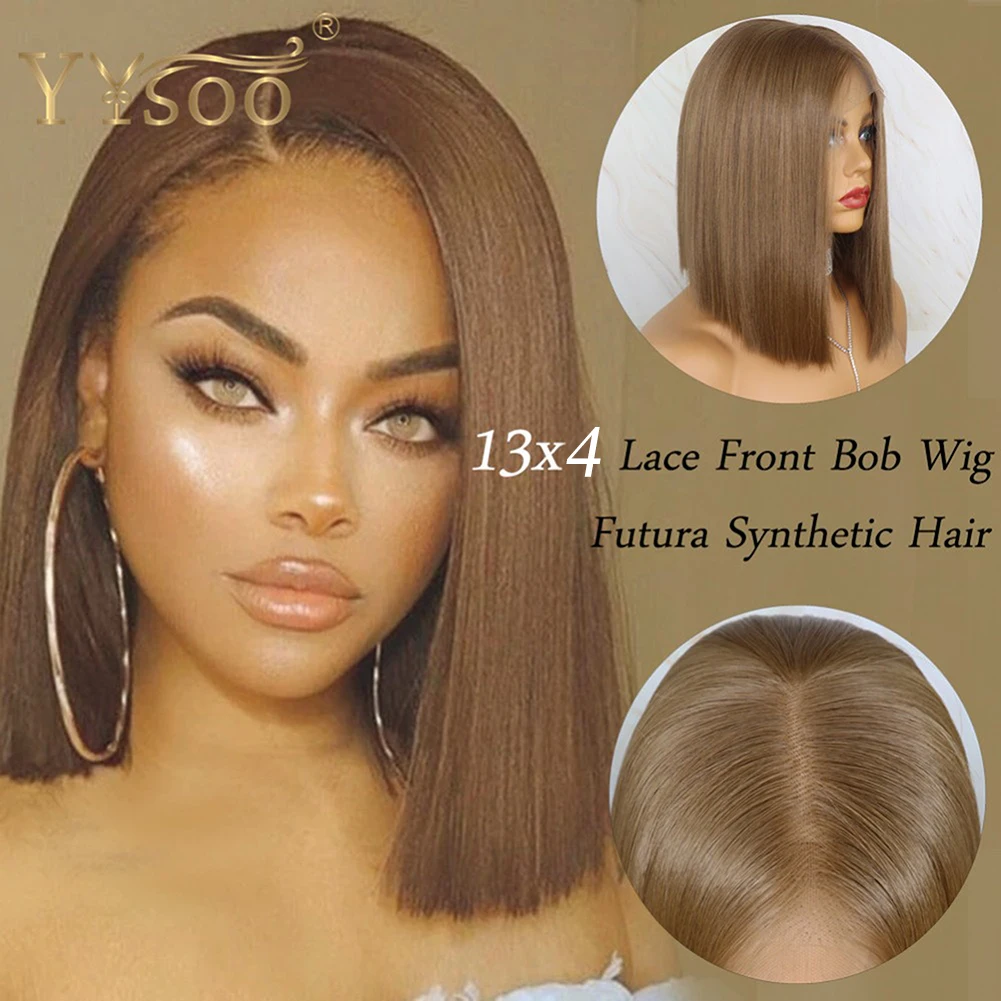 YYsoo короткий 13x4 Футура синтетический парик на шнурке спереди #10 цветов шелковистые прямые коричневые парики для женщин термостойкие натуральные волосы